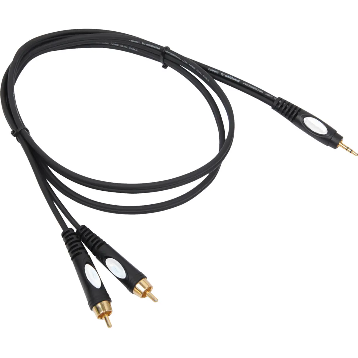 Cabo de Áudio Profissional (gama Pro da BST) com 1 Jack de 3.5mm Stereo macho ligado a 2 RCAs macho.