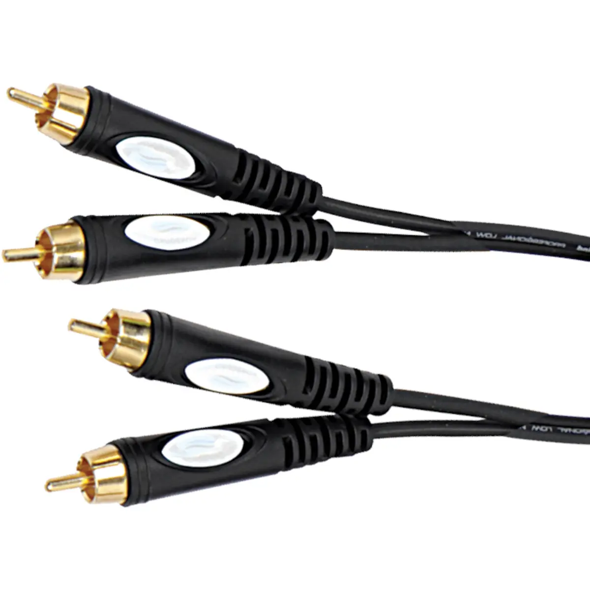 Cabo de Áudio Profissional (gama Pro da BST) com 2 RCAs macho ligados a outros 2 RCAs macho.