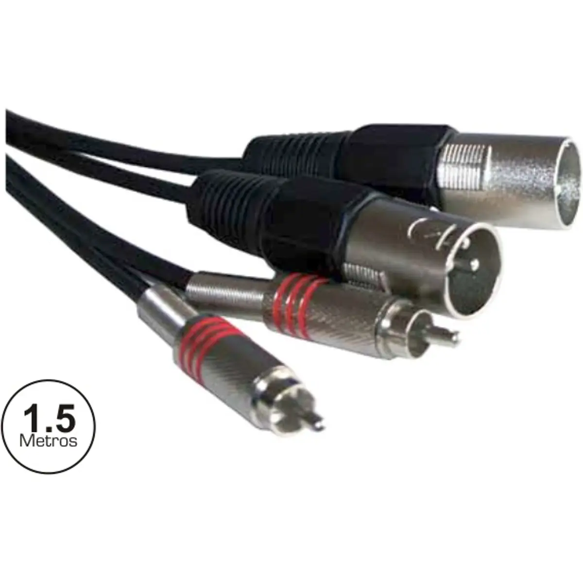 Cabo de áudio com 2 RCA macho ligados a duas fichas XLR de 3 pinos Macho.