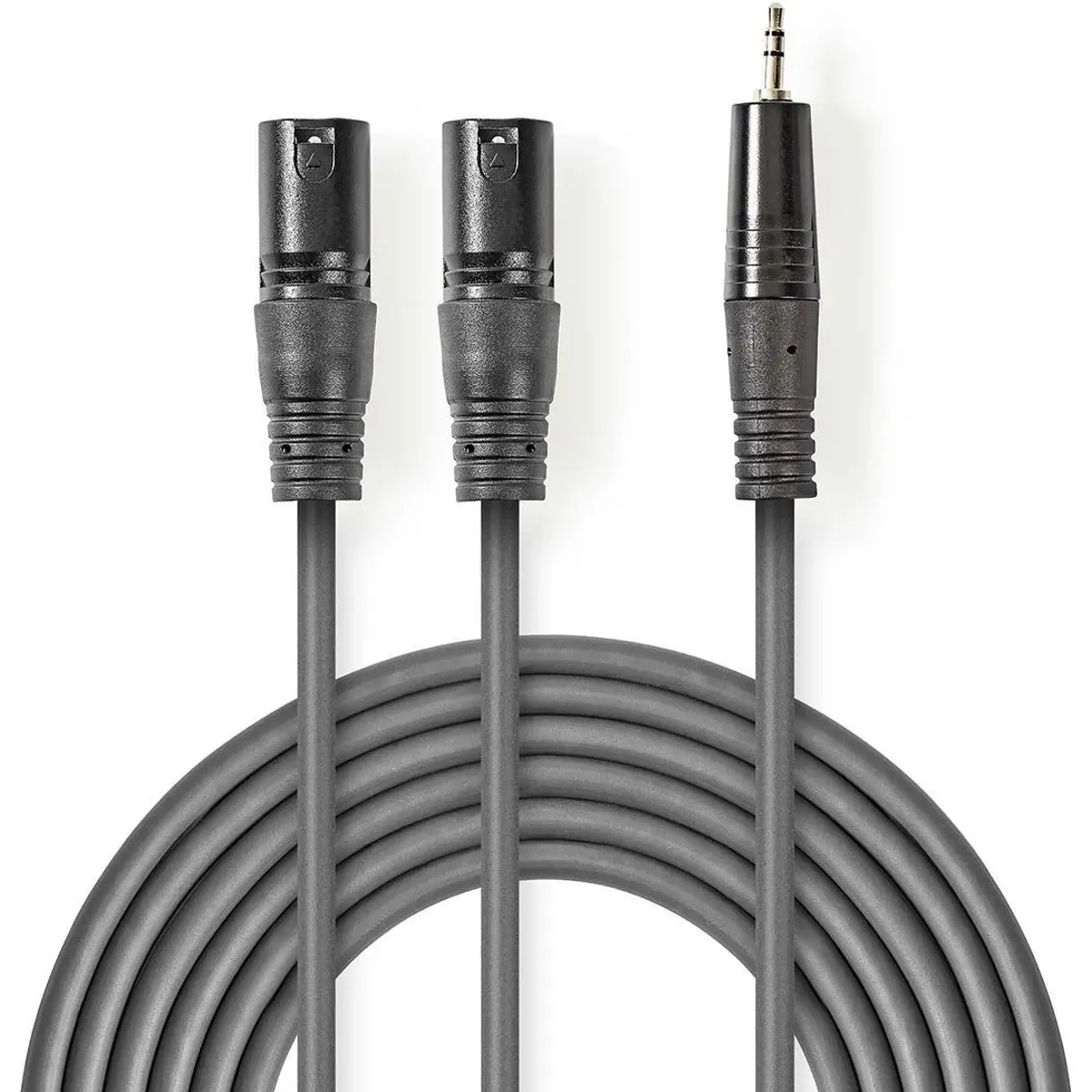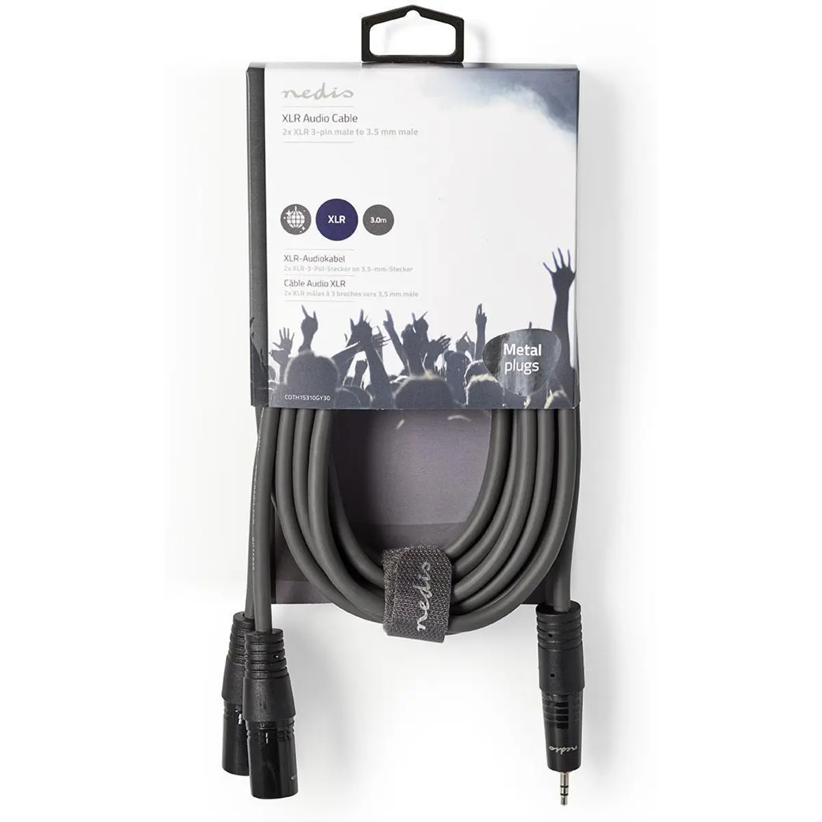Nedis COTH15310GY30 - Cabo balanceado Jack 3.5mm - 2x XLR 3PIN macho - 3.0m