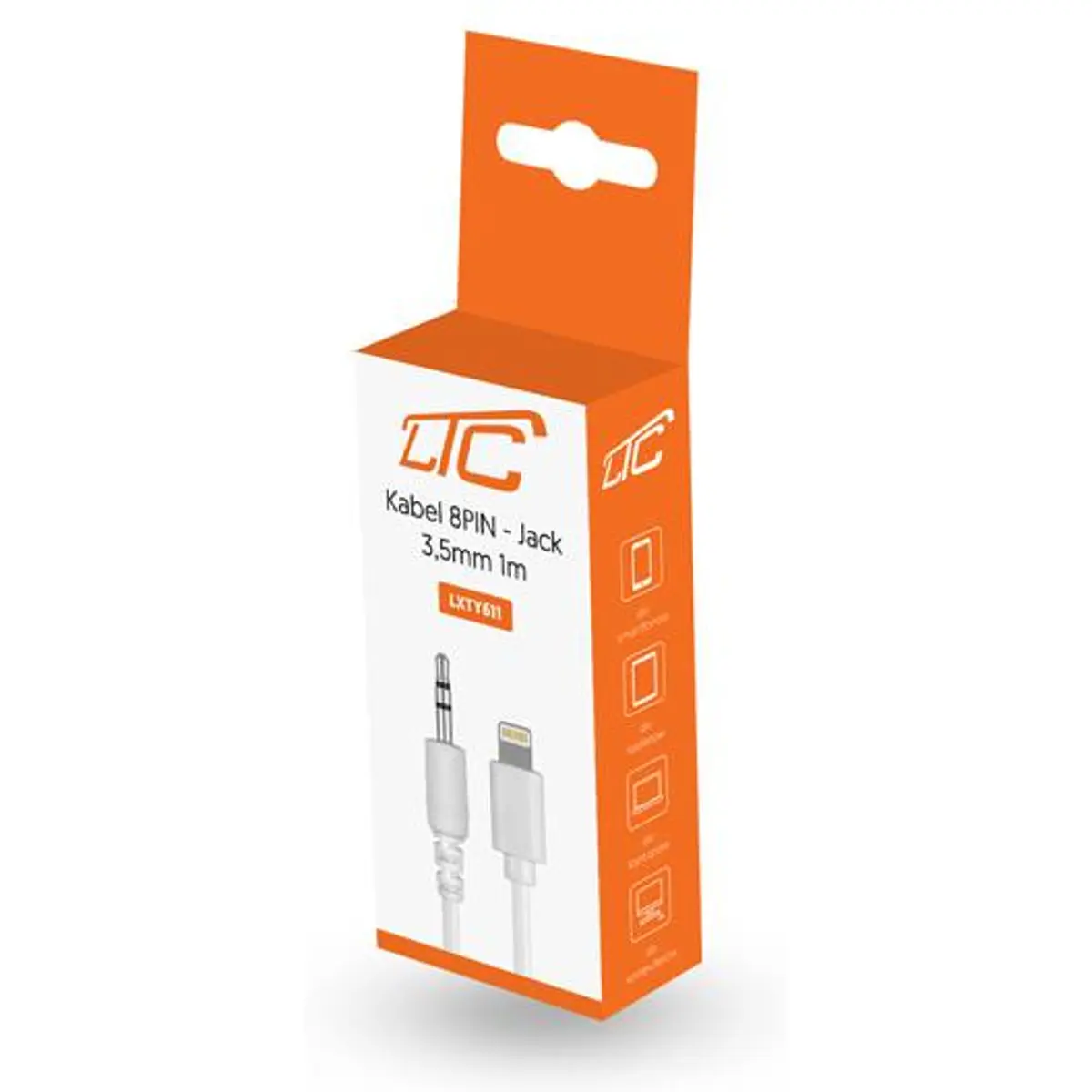 Cabo de áudio utilizado para ligar dispositivos com porta Lightning a altifalantes, auscultadores e outros dispositivos de áudio com uma porta mini jack de 3,5 mm.