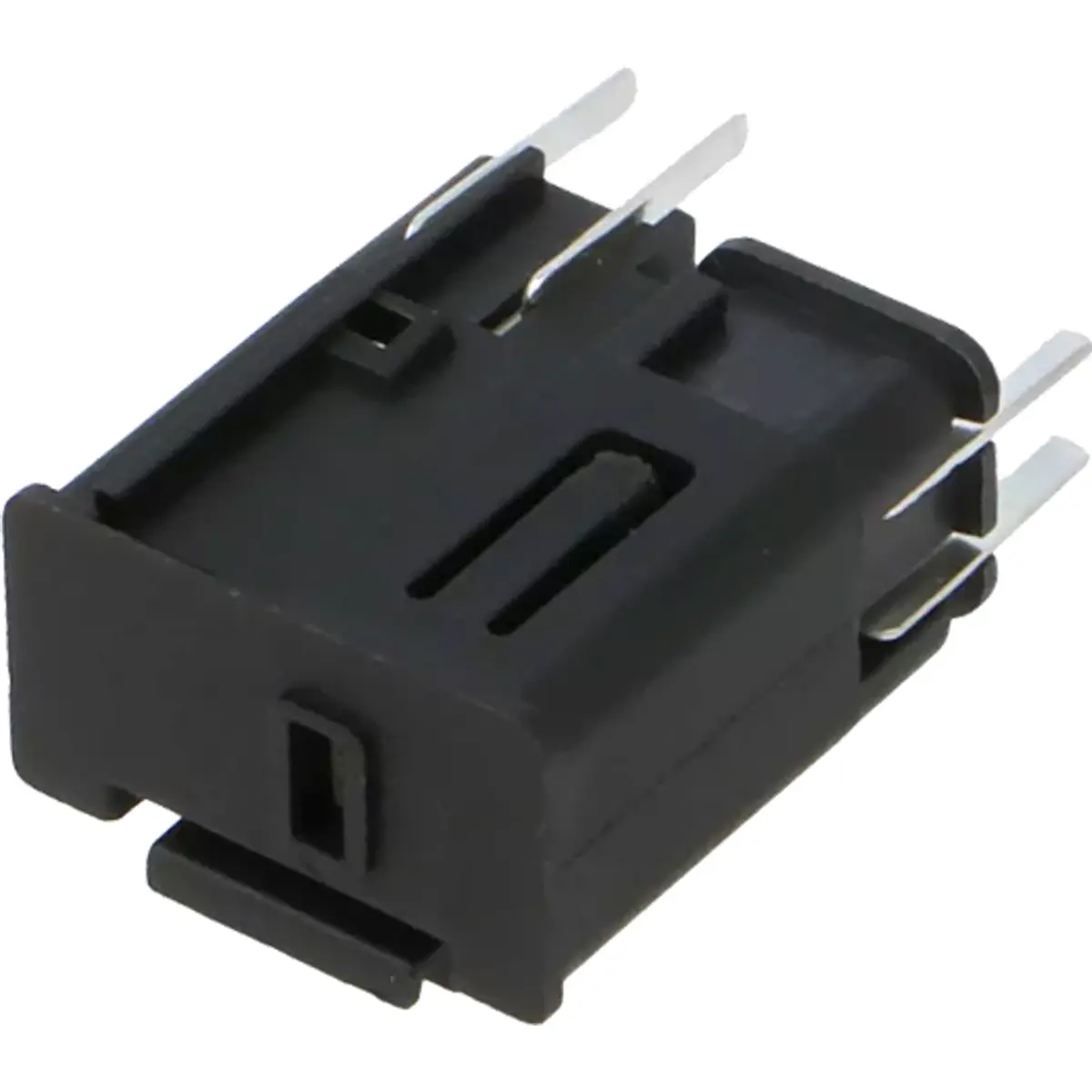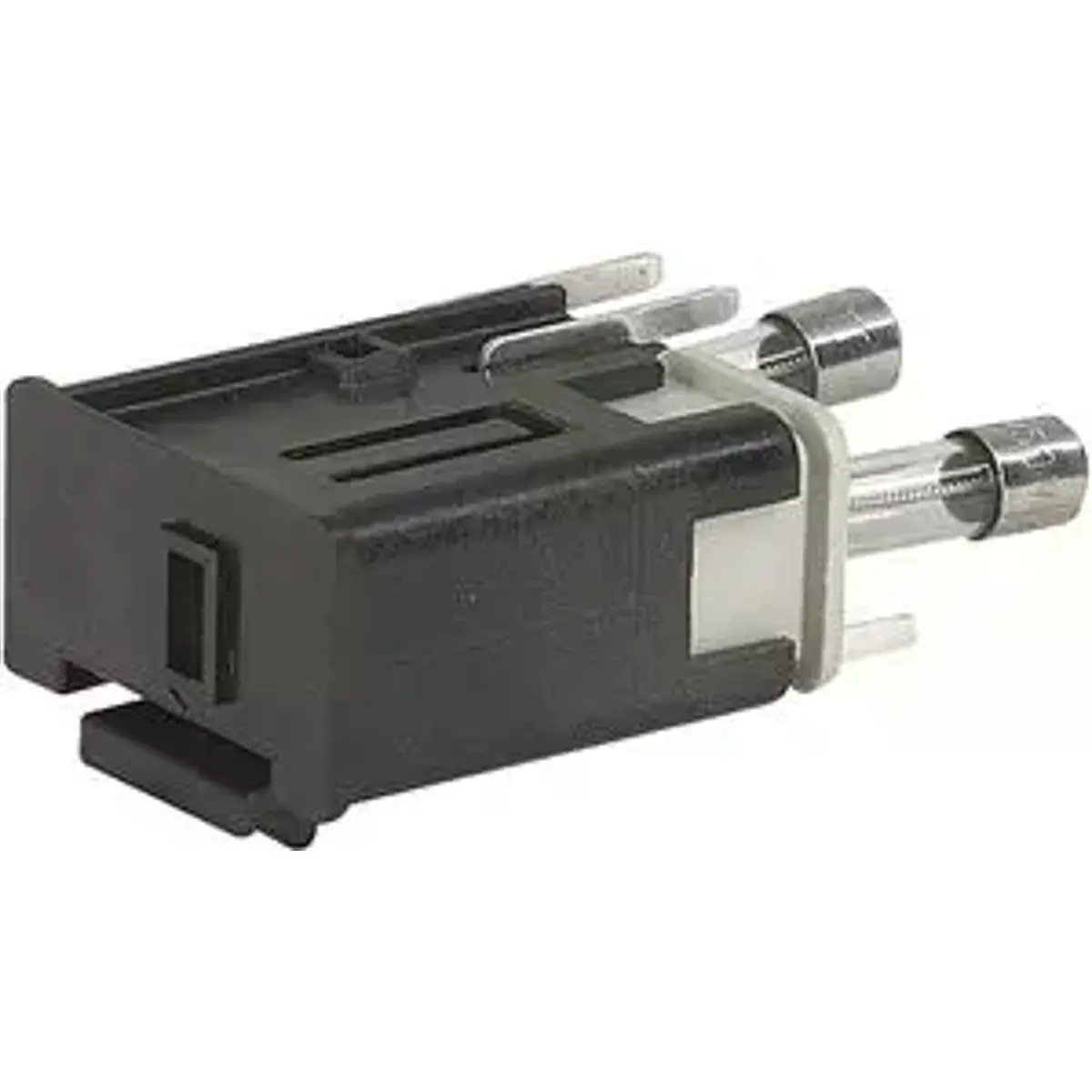 Porta-fusíveis SCHURTER para dois fusíveis cilíndricos Ø5x20mm, com acabamento preto, montagem em trava e tipo de acessório para fusíveis: tomada. Fabricante SCHURTER oferece este porta-fusíveis para fusíveis cilíndricos Ø5x20mm, compatível com o formato 5x20mm.