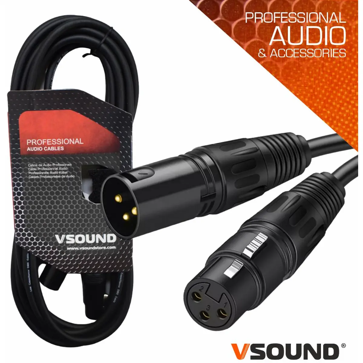 VSOUND CPSN225-10 - Cabo XLR 3p macho ↔ XLR 3p fêmea - 10m