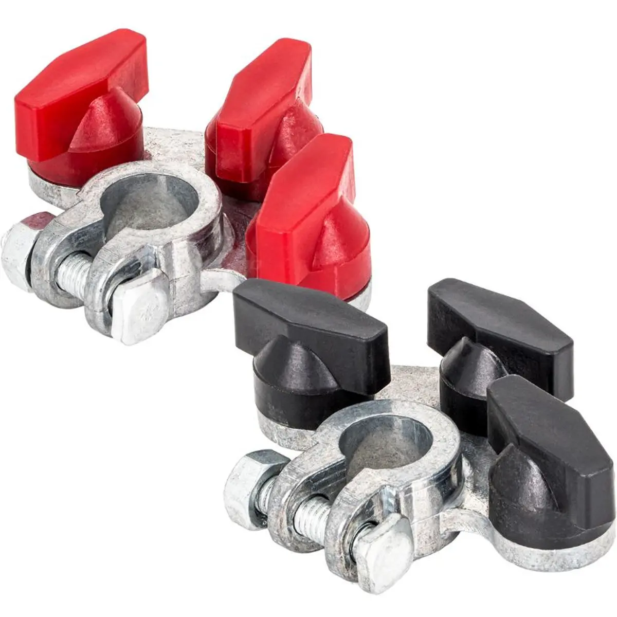 Bornes de bateria fabricadas em liga de zinco com revestimento eletro-galvanizado, concebidas para fixação segura e confiável de cabos de alimentação aos terminais da bateria. Adequadas para aplicações automóveis e industriais.
