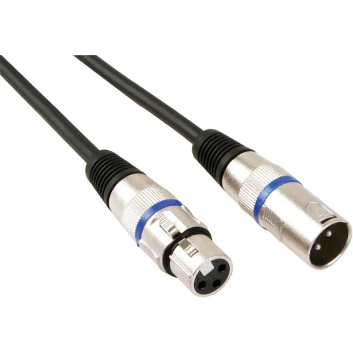 Cabo de Áudio Profissional com 1 XLR macho de 3 pinos ligado a 1 XLR fêmea de 3 pinos. Pode ser utilizado, por exemplo, para ligar um microfone balanceado.