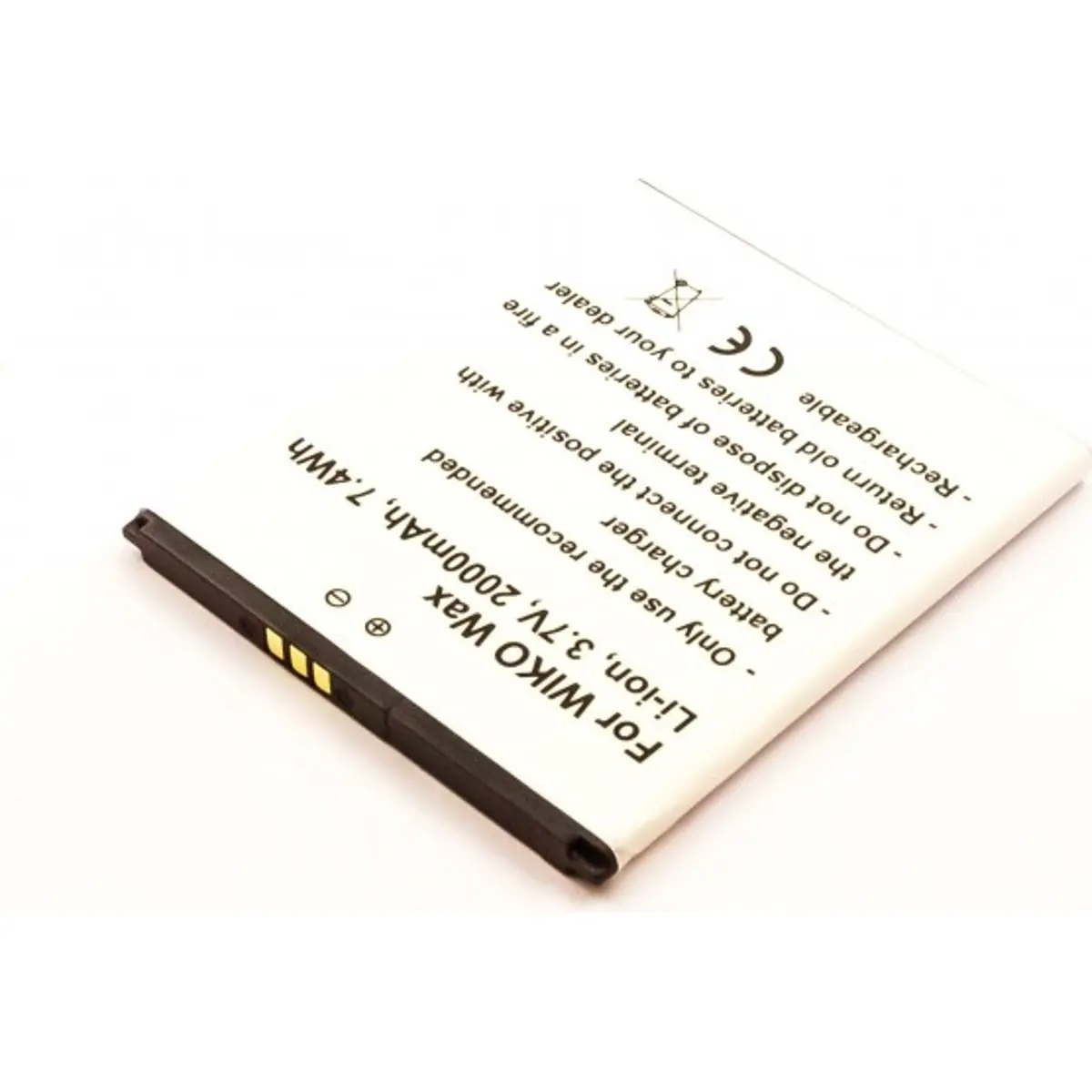 Bateria de substituição para telemóvel com 3.7V, 2000mAh e 7.4Wh em Li-Ion. Compatível com modelos WIKO Rainbow 4G e Wax.