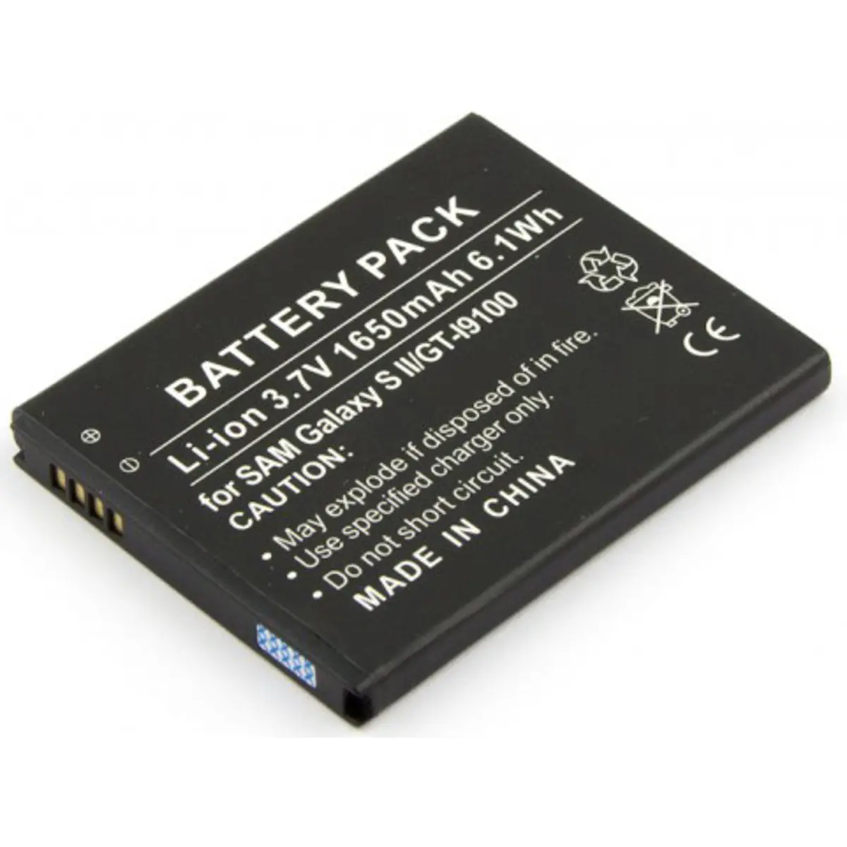 Bateria para telemóvel compatível com Samsung Galaxy S II, GT-I9100 (EB-F1A2GBU) 3.7V 1650mAh 6.1Wh Li-Ion
