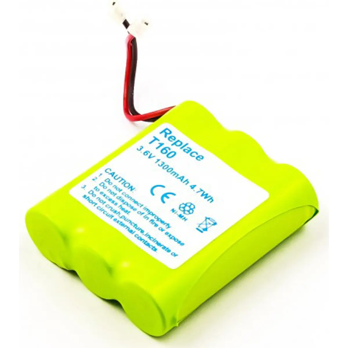 Bateria recarregável NiMH de 3x AA para telefone sem fios com 3.6V, 1300mAh e 4.7Wh, com dimensões compactas de 50.8x44.2x14.4 mm e peso de 48 g. Ideal para substituir baterias originais, oferece autonomia estável para chamadas e uso diário, em packs substituíveis que permitem recarregamento repetido com bom desempenho.