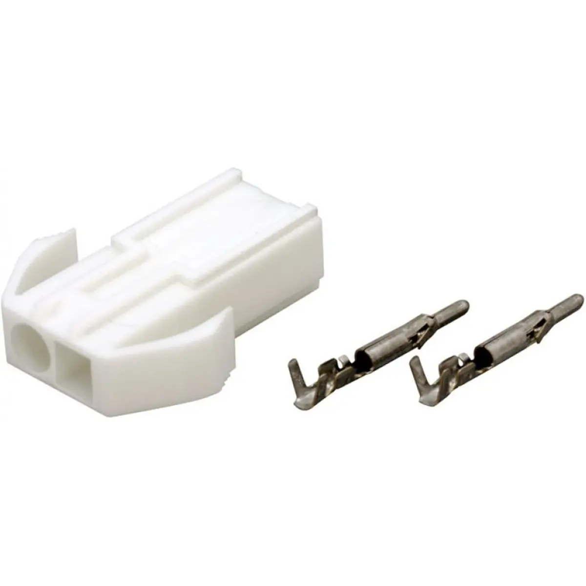 Conector raster wire-wire de 4,5 mm com dois pinos, macho com terminais. Dimensões compactas de 10,4 x 5,9 x 25,0 mm, ideal para ligações entre cabos e placas em eletrónica. Compatível com terminais padrão de 4,5 mm, oferece montagem rápida e ligações seguras em prototipagem, automação e cablagens. Desempenho estável, resistência e facilidade de substituição sem depender de marcas.