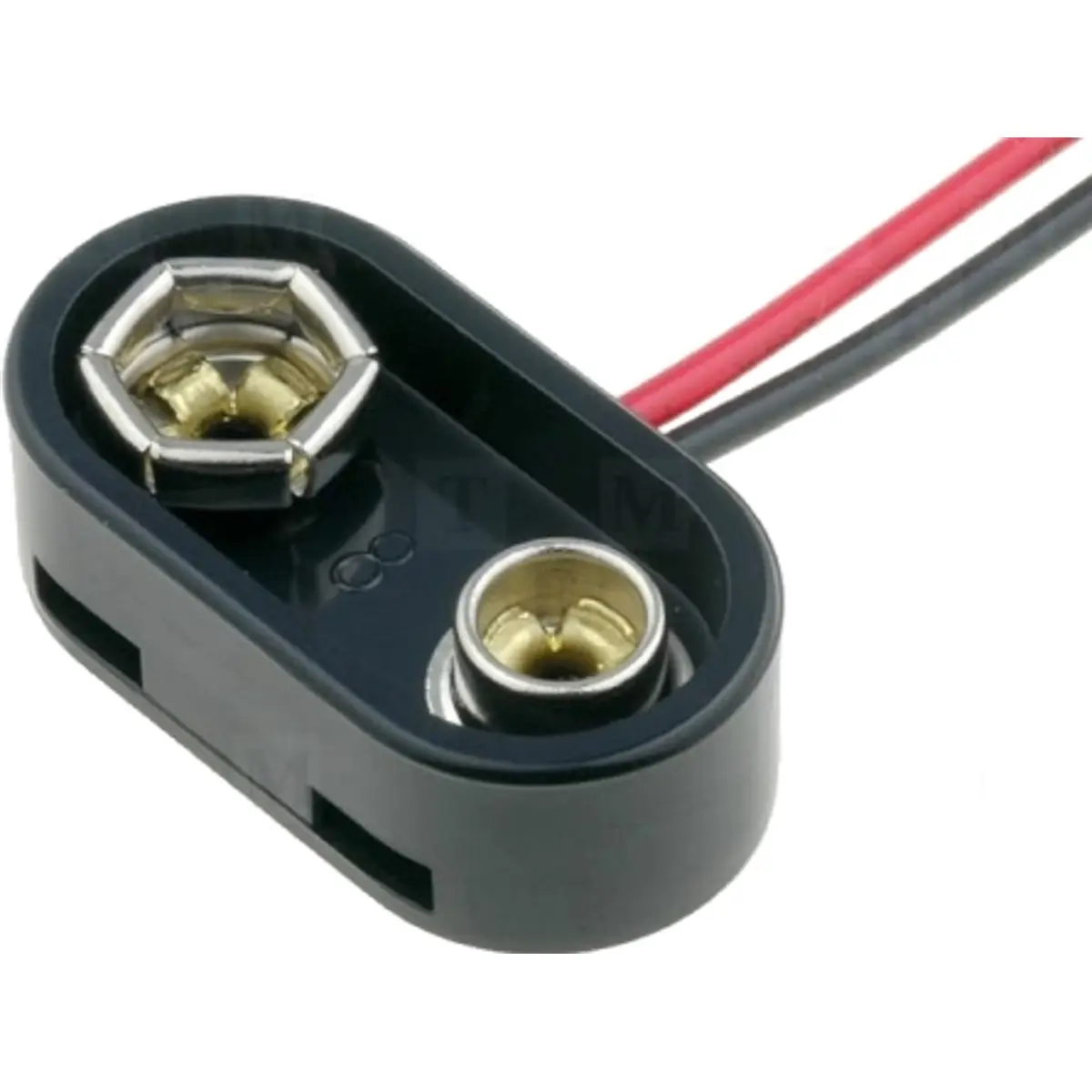 Suporte snap p/ pilhas 6F22 9V c/ fios - rígido 90º