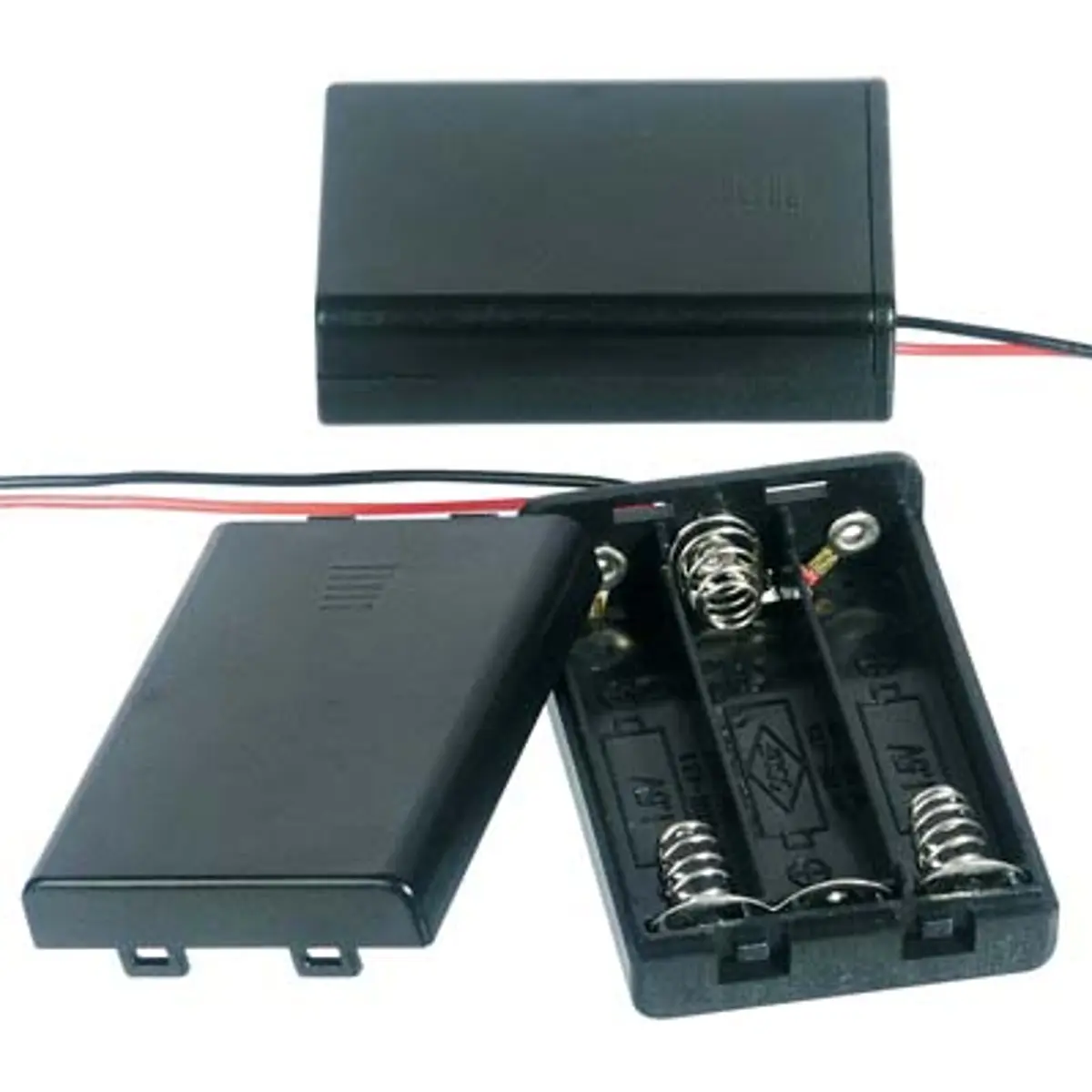 Suporte de pilhas 3xAAA (3) c/fios, caixa fechada e interruptor