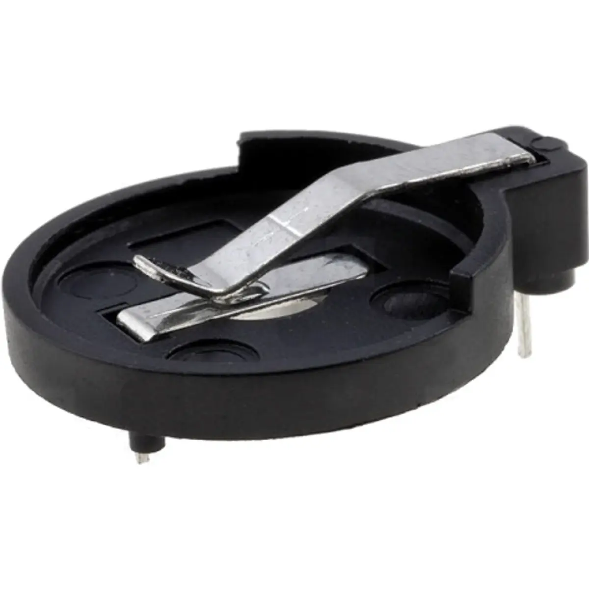 Este suporte de pilhas botão CR2032 para PCB oferece montagem horizontal e saídas para impressos, compatível com pilhas de 20 mm de diâmetro e 5,1 mm de altura. Concebido para fixação estável na placa, facilita a substituição da pilha e a conectividade com eletrónica de montagem em PCB. Ideal para projetos que requerem uma base robusta para pilhas CR2032, com encaixe simples e compatibilidade com bases padrão de montagem em PCB.