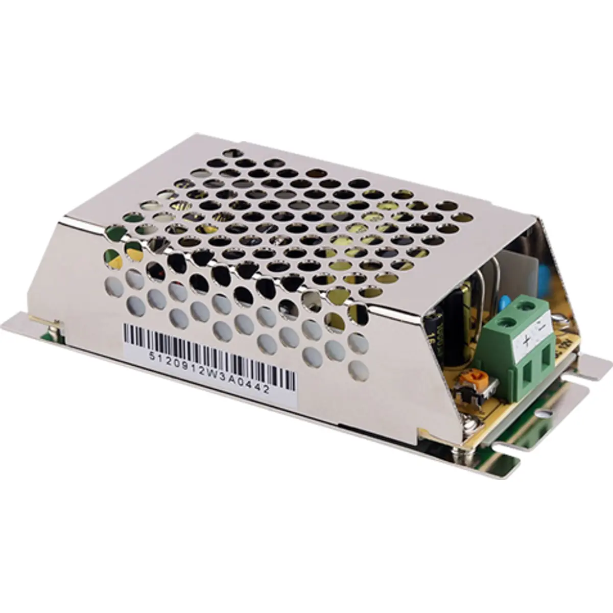 Fonte de alimentação AC/DC comutada. Estabilização precisa da tensão. Carcaça fechada em grelha para uma melhor dissipação de calor.