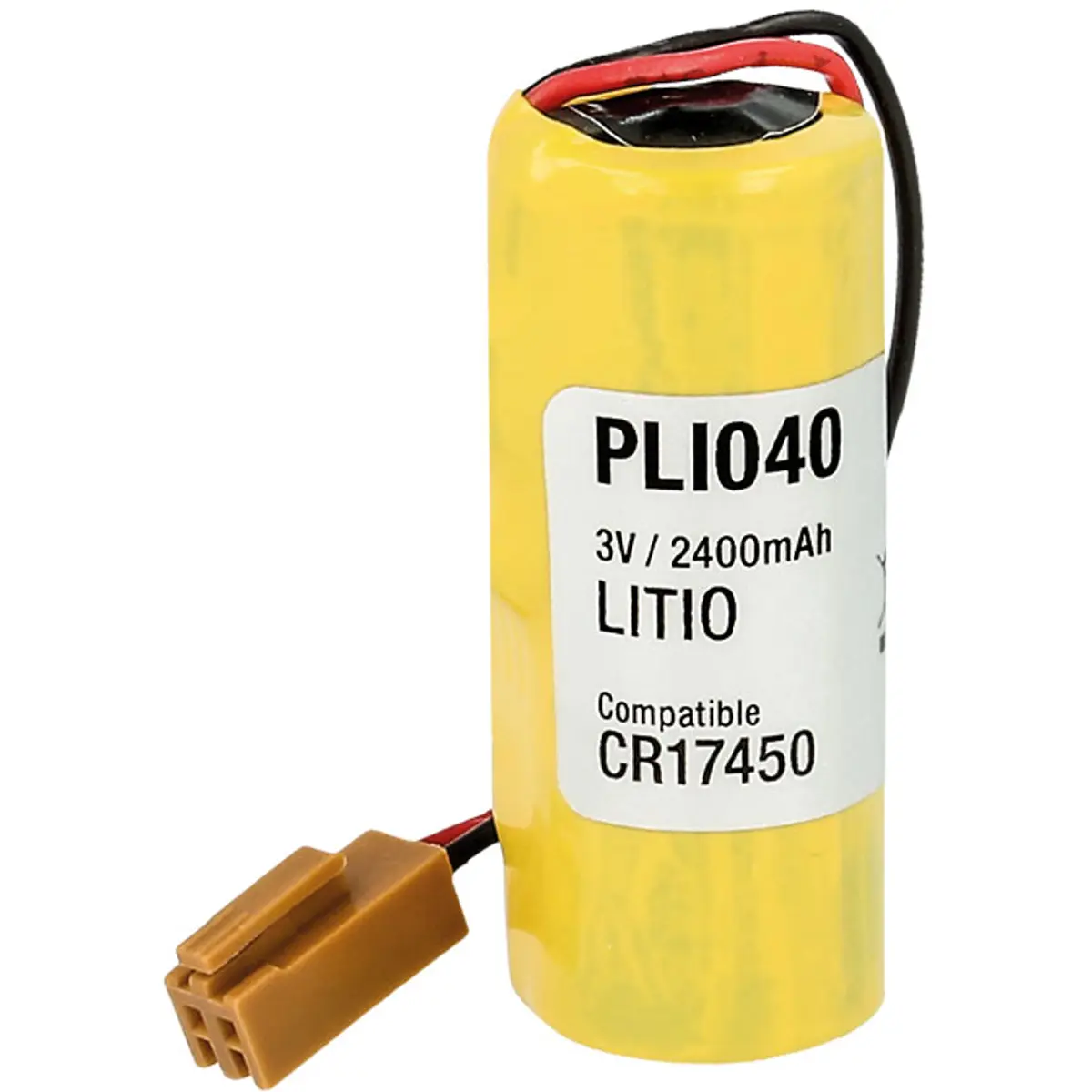 Esta pilha de lítio CR17450, com 3.0 V, 2400 mAh e tecnologia LiMnO2, possui dois fios e ficha, em tamanho 17 x 45.0 mm. É compatível com CR17450SE-R, A02B-0200-K102 e A98L-0031-0012, facilitando a substituição em sistemas que utilizam conectores com ficha.