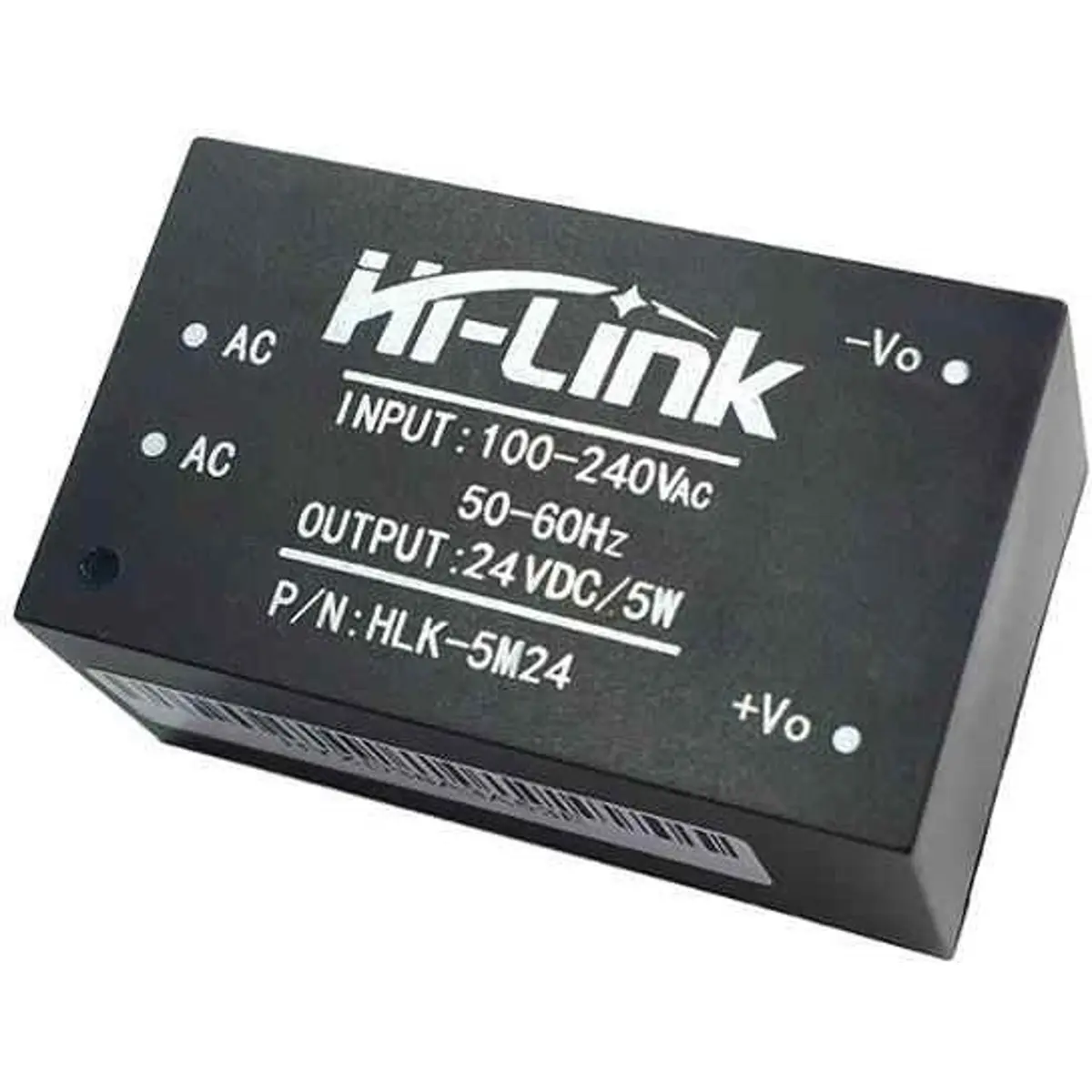 Esta fonte bastante compacta, pode fornecer 24V / 0.208A (5W) a partir de 120VAC ou 230VAC, o que a torna perfeita para pequenos projetos que precisam de uma fonte de 24 volts, alimentada pela rede elétrica.