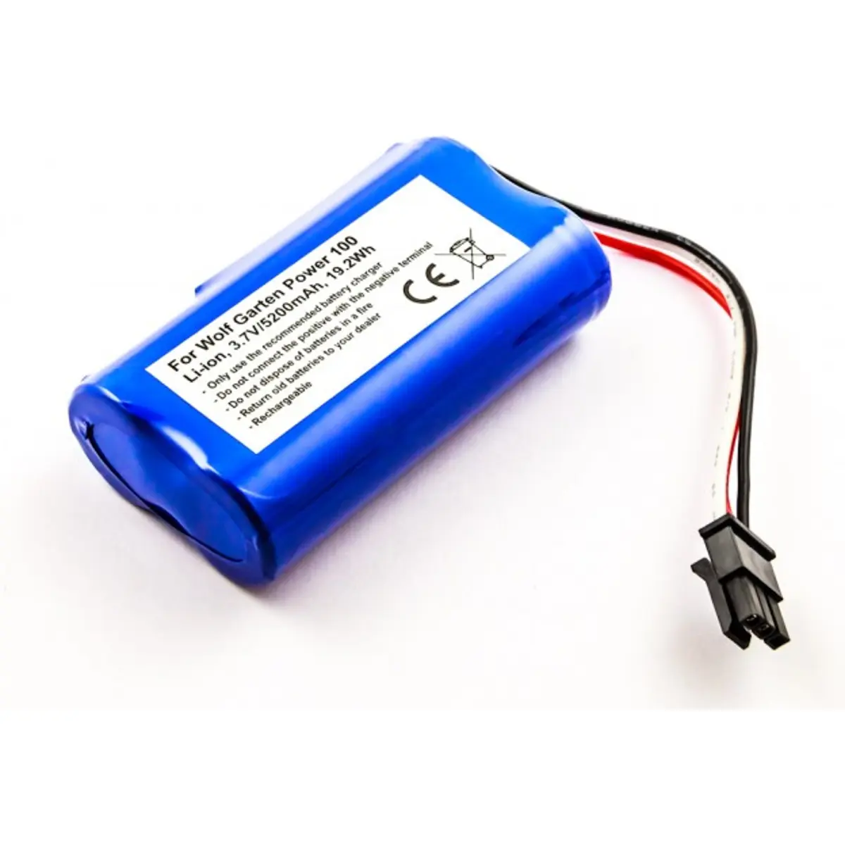 Bateria Li-ion de 3,7V, com capacidade de 5200mAh, compatível com Wolf Garten Power 100, proporcionando energia estável para o equipamento.