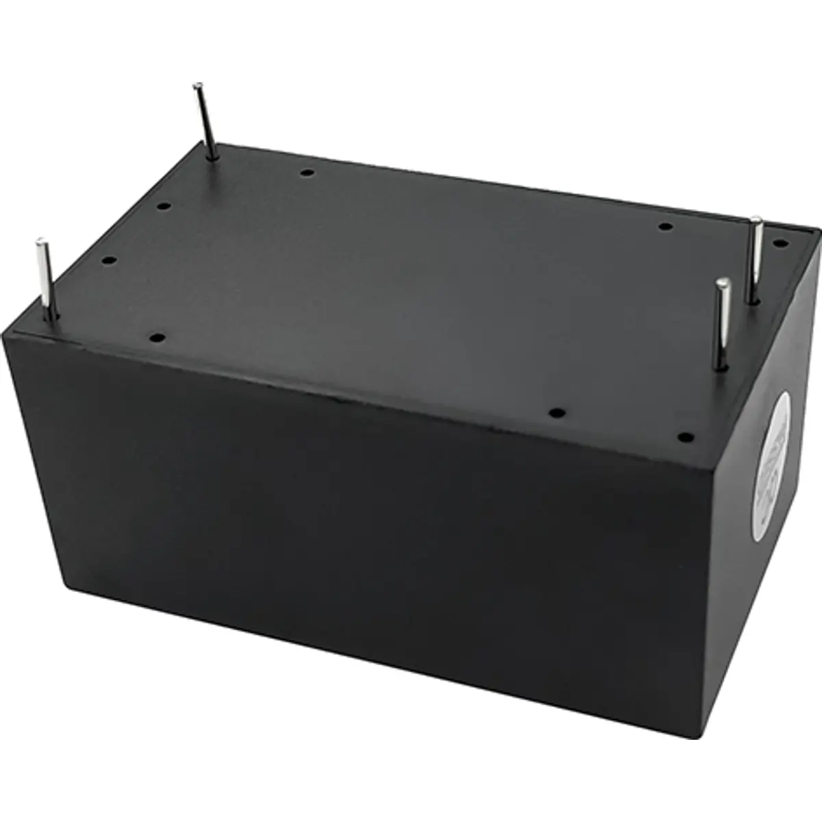 Fonte de alimentação encapsulada para PCB que admite 100–240 VAC (também 85–264 VAC ou 70–350 VDC) e fornece 24 V DC a até 420 mA (480 mA de pico). Oferece ripple baixo, protecção contra sobrecarga e curto-circuito, elevada eficiência e alta densidade de potência. Compatível com UL e CE, cumpre EMC e testes de segurança. Consumo em standby < 0,1 W, temperatura de operação entre -20 °C e +60 °C, humidade 5–95%, MTBF de 100000 h. Dimensões 46,9 x 27,8 x 21,8 mm.