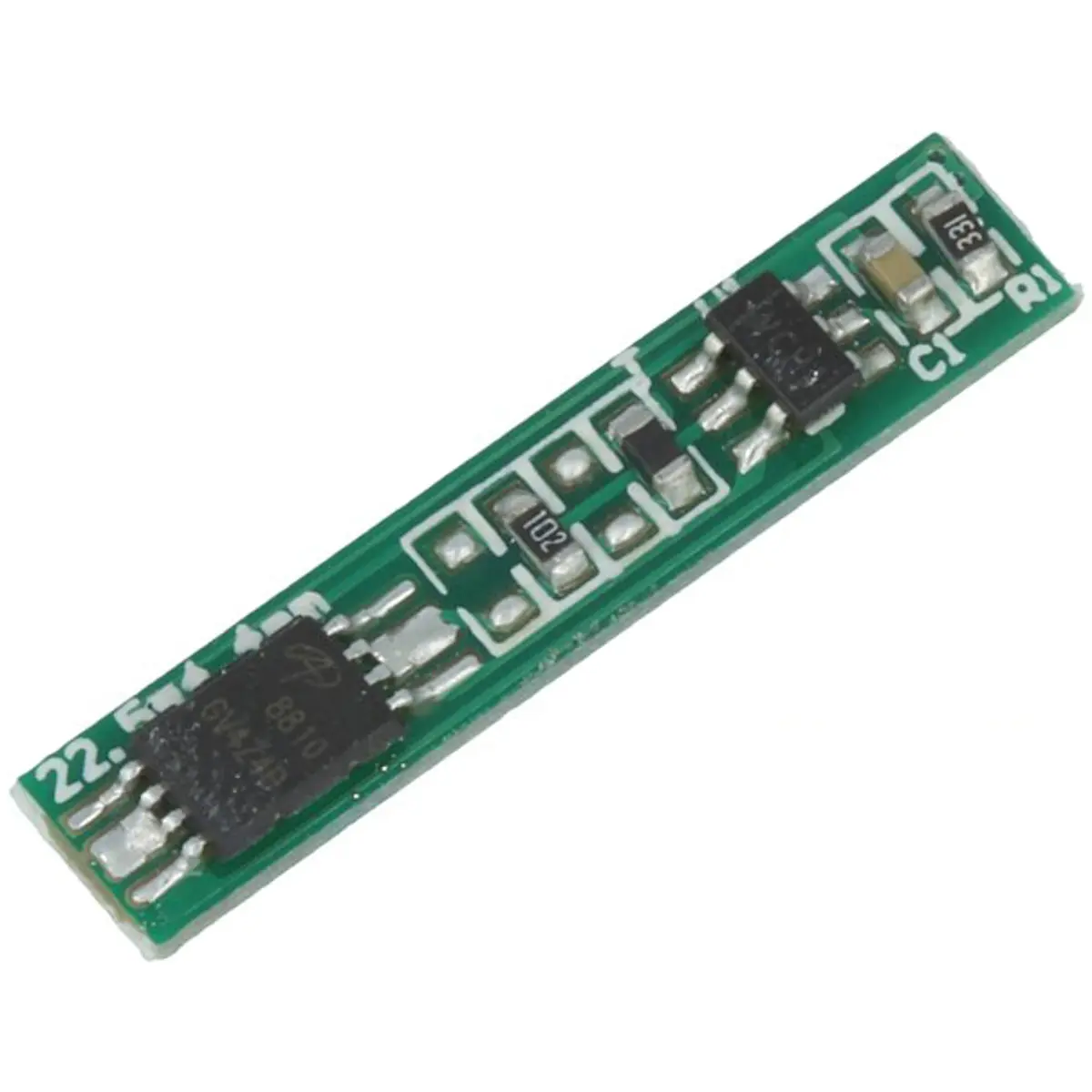 Placa de proteção para uma única bateria Li-Ion de 3.6V, com corrente máxima de 2.5A. O modelo PCM-L01S03-293 integra proteção contra sobrecarga, curto-circuito e sobrecarregamento, assegurando a segurança da célula e do circuito. Possui dimensões compactas de 22.5 x 4.4 x 2 mm, ideal para aplicações em projetos eletrónicos que exigem controlo de energia fiável.