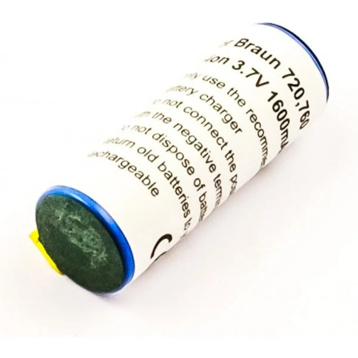 Bateria recarregável de Li-ion com 3,7 V, 1600 mAh (5,9 Wh) para dispositivos compatíveis com Braun 720 e 760. Compatível com os modelos 15038, 3611290 e 3606410, apresenta dimensões de 49,5 x Ø 18,4 mm. Ideal para reposição de energia, oferece autonomia prolongada, desempenho estável e fiável, com construção adequada para uso diário.