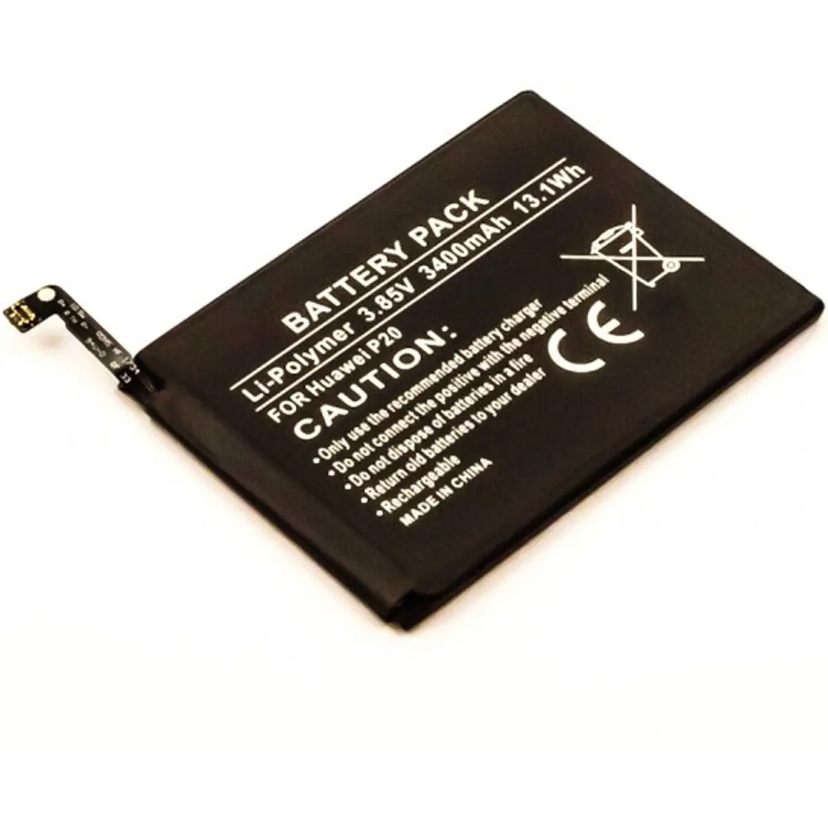 Bateria recarregável de Li-Polymer, com voltagem 3.85V, capacidade de 3400mAh (13.1Wh) e dimensões de 82.1 x 61.3 x 3.8 mm. Ideal para substituir baterias de telemóveis com especificação semelhante, oferecendo autonomia estável, recarregamento eficiente e reposição simples. Compatível com modelos HB396285ECW e HB396285EBC. Leve e compacta, suporta uso diário prolongado sem perder desempenho.