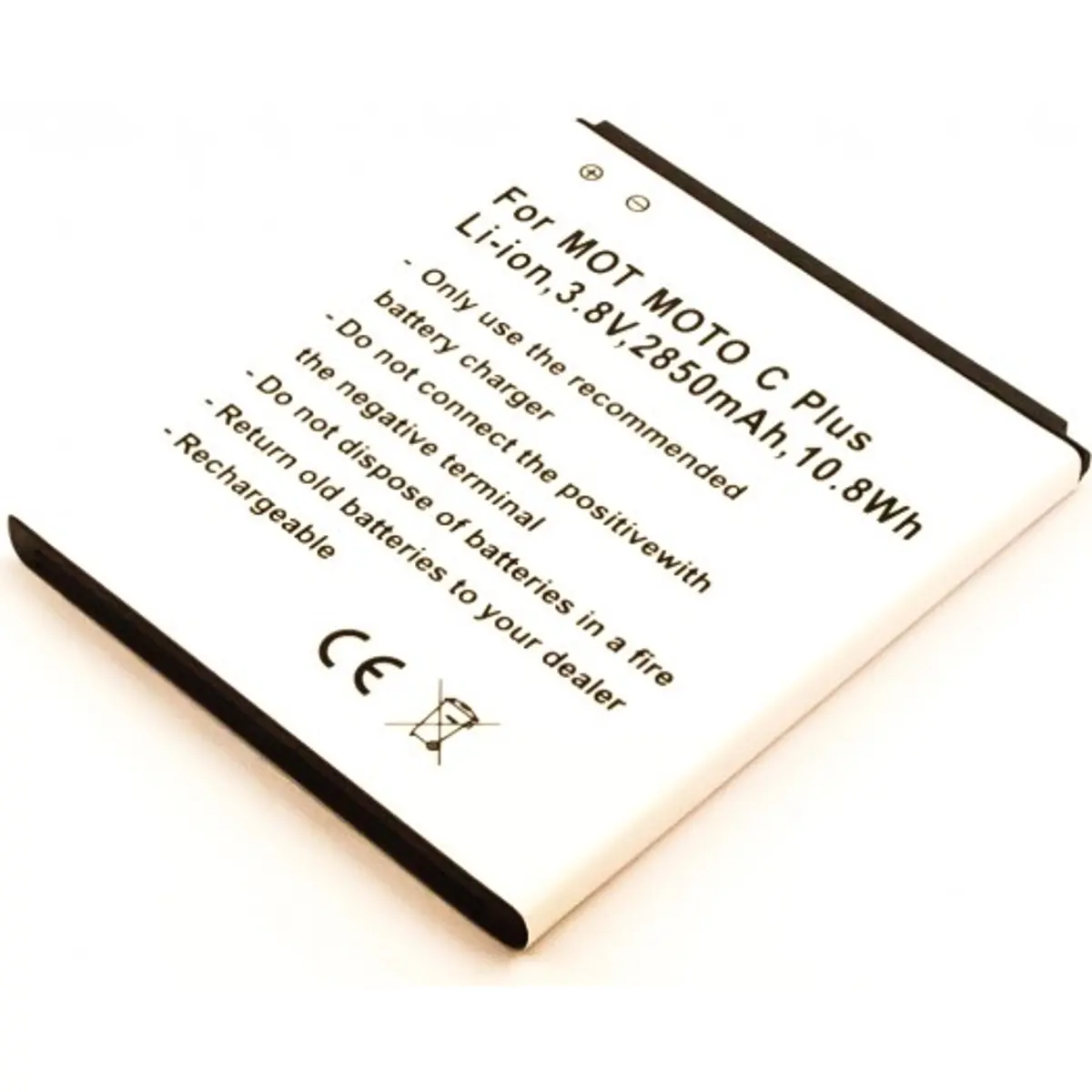 Bateria recarregável de Li-ion para telemóvel, com 3.8V, 2850mAh (10.8Wh), compatível com Motorola MOTO C Plus. Oferece autonomia estável, montagem simples e ajuste perfeito num formato compacto de 73.5 x 61.8 x 5.7 mm. Compatibilidade com os modelos SNN5979A e HC60, adequada para reposição rápida e fiabilidade a longo prazo.