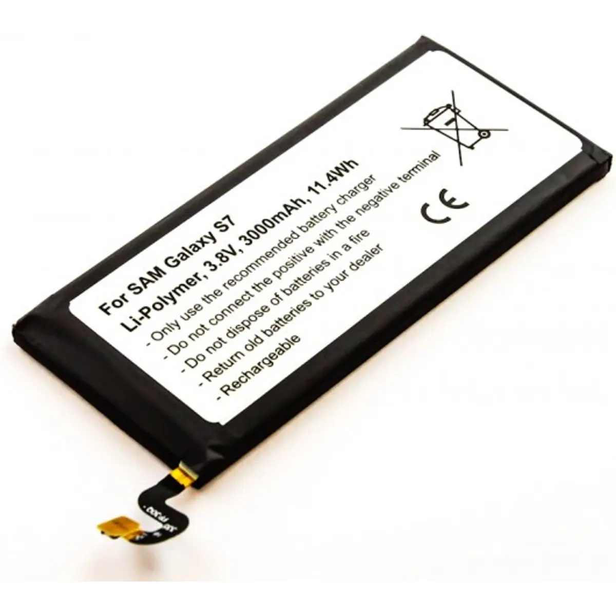 Substituição de bateria recarregável para Samsung Galaxy S7. Esta bateria Li-Polymer oferece 3.8V de voltagem, 3000mAh de capacidade (11.4Wh) e dimensões de 87.4 x 38.9 x 4.8 mm. Compatível com os modelos EB-BG930ABE e EB-BG930ABA. Desempenho estável, com mais autonomia e maior durabilidade. Ideal para trocas de bateria, com encaixe seguro e procedimento simples de instalação, mantendo a compatibilidade com o smartphone sem comprometer a segurança ou a qualidade.