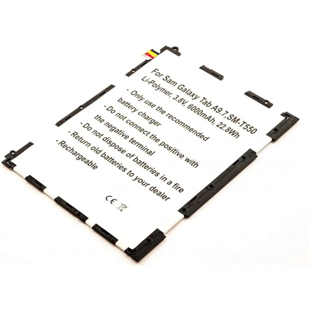 Esta bateria recarregável de Li-Polímero para o Samsung Galaxy Tab A 9.7 (SM-T550) oferece 3.8 V, 6000 mAh e 22.8 Wh de energia confiável. Compatível com EB-BT550ABE, tem dimensões de 172.7 x 125.5 x 3.1 mm e facilita a substituição segura, prolongando a autonomia do tablet e mantendo o desempenho estável dia após dia.