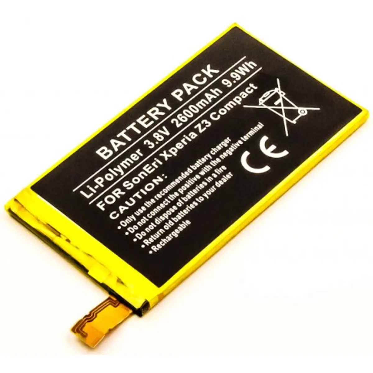 Bateria de substituição recarregável para telemóveis em Li-Polymer, com 3.8V e 2600mAh, correspondente a 9.9Wh, compatível com LIS1561ERPC. Proporciona autonomia estável, boa duração entre recargas e perfil compacto (3.8 mm de espessura) com dimensões 93.9 x 51.8 x 3.8 mm. Ideal para reposição de bateria, garantindo recargas seguras, fiáveis e duráveis para dispositivos que utilizam LIS1561ERPC.
