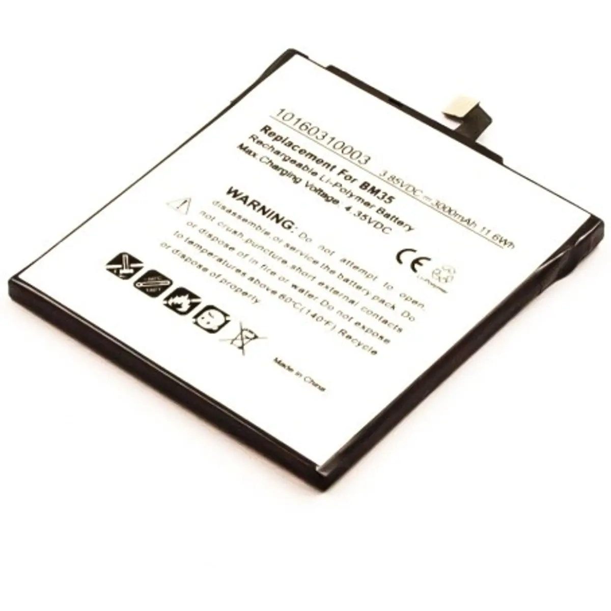 Bateria de substituição recarregável em Li-Polymer com voltagem de 3.9V, capacidade de 3000mAh e energia de 11.6Wh. Compatível com BM35 e com dimensões de 68.4x60.0x4.5mm, oferecendo encaixe seguro e substituição simples. Proporciona autonomia estável para telemóveis, carga rápida e confiável, ideal para reposição, prolongando a vida útil do dispositivo sem alterações externas.