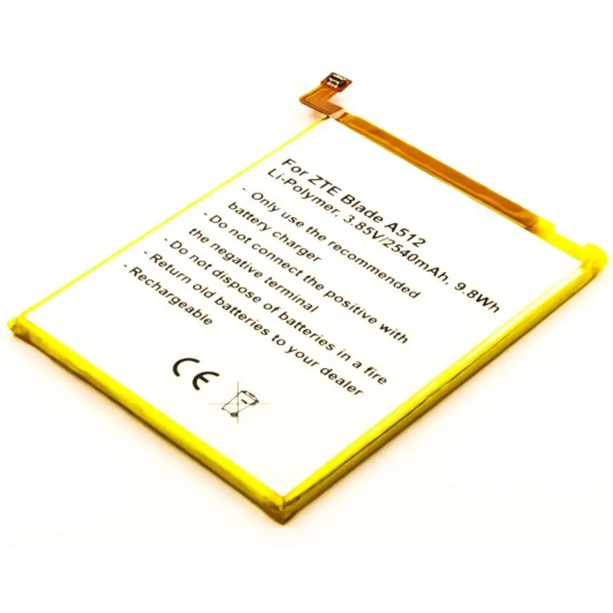 Bateria para telemóvel compatível com ZTE Blade A512, Li-Po 3.85V 2540mAh 9.8Wh