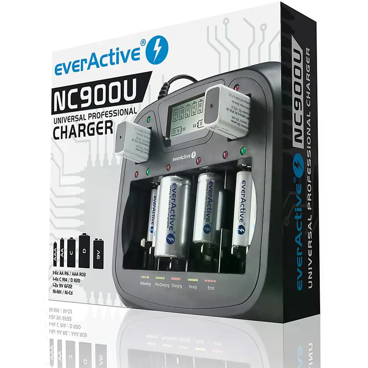 - Visor LCD que mostra percentagens de carga das baterias individualmente