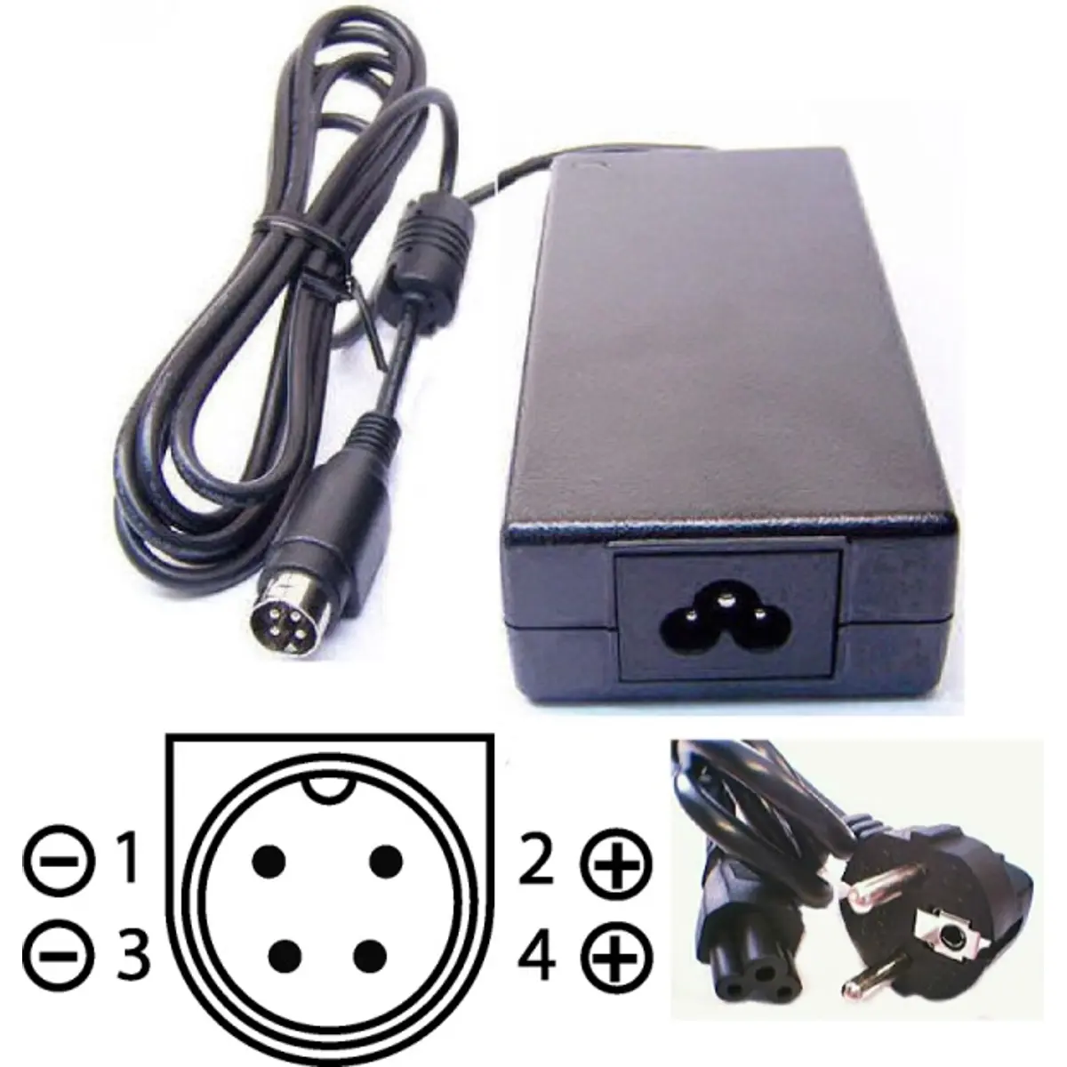 Fonte de alimentação de 12VDC com 5A e 60W, destinada a fornecer energia estável para dispositivos que requerem 12VDC. Possui entrada ampla de 100-240VAC, adequada a redes elétricas internacionais, e saída de 12VDC com capacidade de 5A. O conector de saída é Mini-DIN de 4 pinos. Inclui cabo de alimentação com fichas Schuko e IEC C5, promovendo ligação segura e compatível com padrões europeus.
