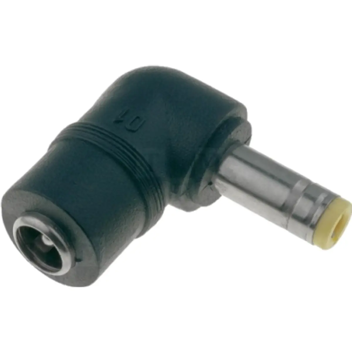 Conector DC com ângulo de 90° que liga ficha macho Ø5.5x2.1 mm a fêmea Ø5.5x2.5 mm, suportando até 7 A. Ideal para ligações DC entre dispositivos de alimentação, reduzindo a curvatura de cabos e facilitando a montagem em espaços confinados.