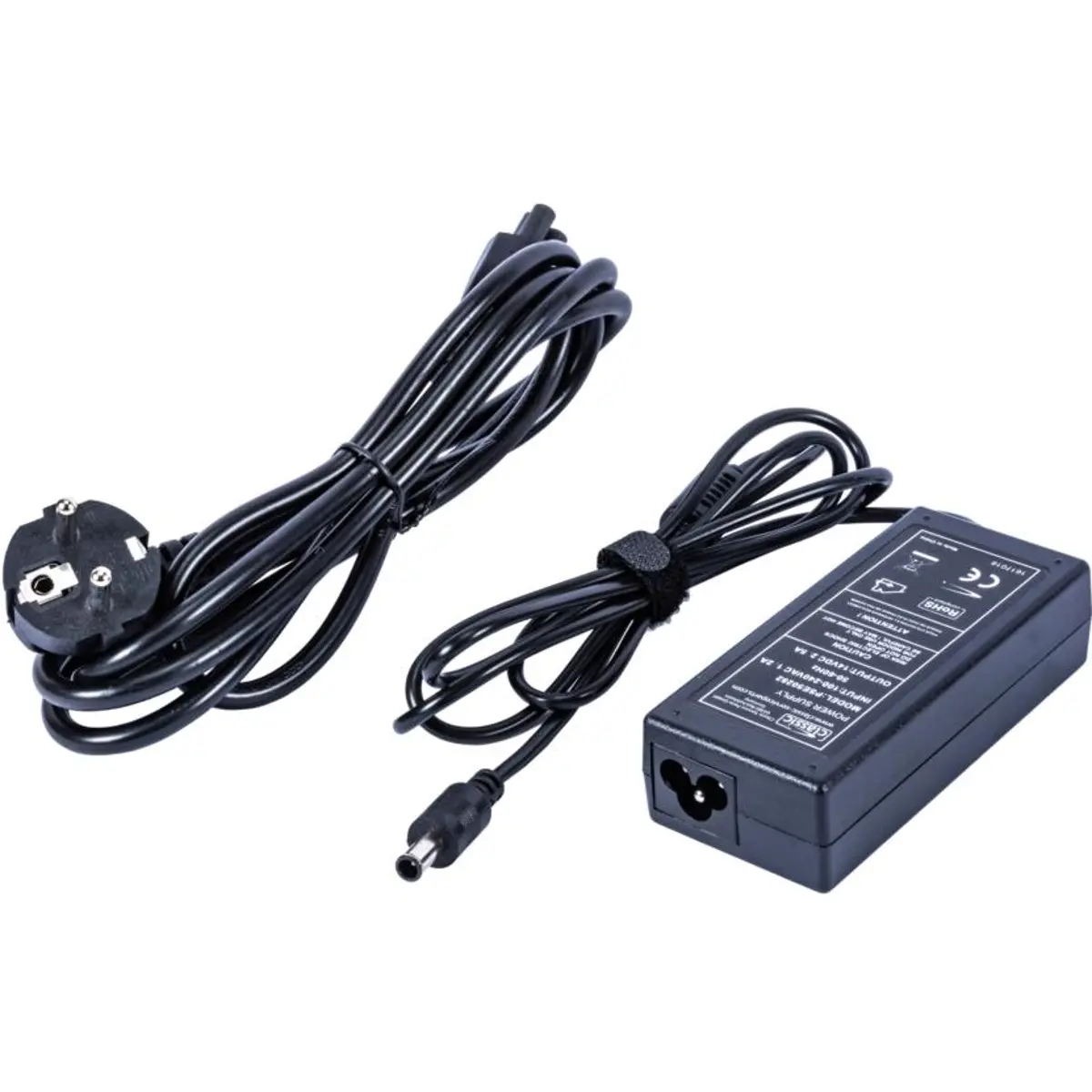 A fonte de alimentação converte energia de 230 VAC para 14 V DC com capacidade de 2,5 A e potência de 35 W, adequada para dispositivos que exigem estas especificações. Inclui cabo de alimentação com ficha Schuko e IEC C5, proporcionando ligações seguras em redes domésticas ou de escritório. A ficha DC é de 6,5x4,4mm com pino central, compatível com várias portas de alimentação padrão. Oferece fiabilidade, proteção básica e facilidade de substituição sem precisar de adaptadores adicionais.