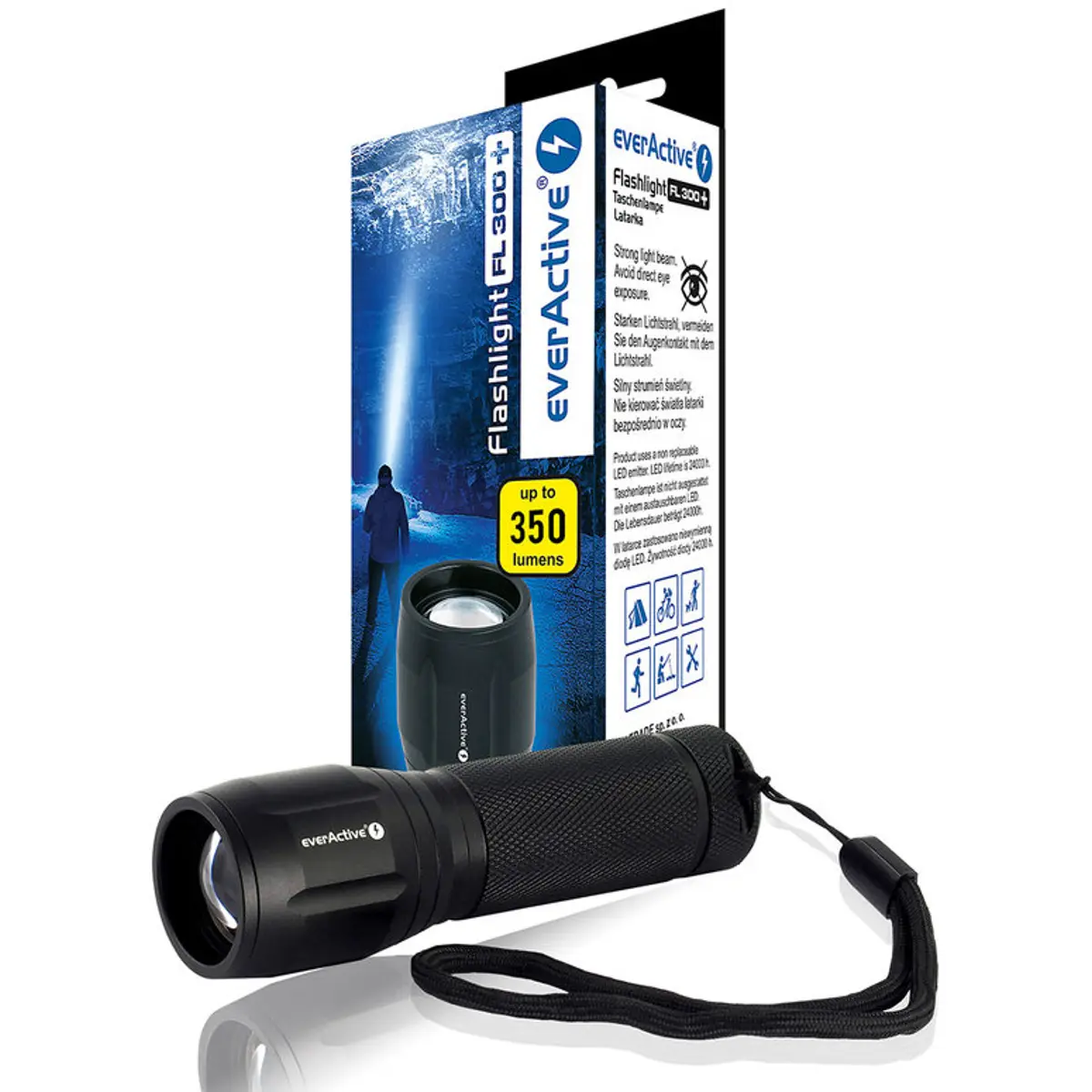 FL-300+ é uma lanterna intransigente da marca everActive . A intensidade máxima de luz de 350 lúmens (com células AAA / R03) e até 550 lúmens (usando o adaptador opcional e a célula de íon de lítio 18650) e um alcance de 250 metros tornam o FL-300 + ideal para uso do dia a dia. A potência da luz é completamente suficiente para utilização na escuridão total.