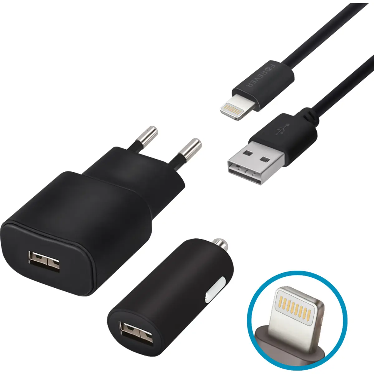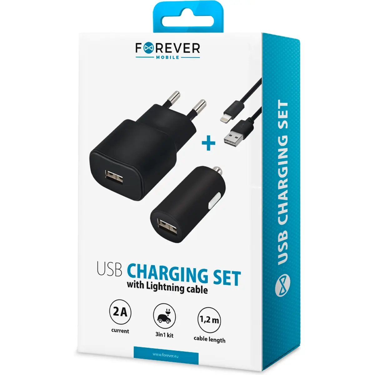 Forever - Conjunto carregador/alimentador de isqueiro + 230VAC 2A c/ cabo lightning