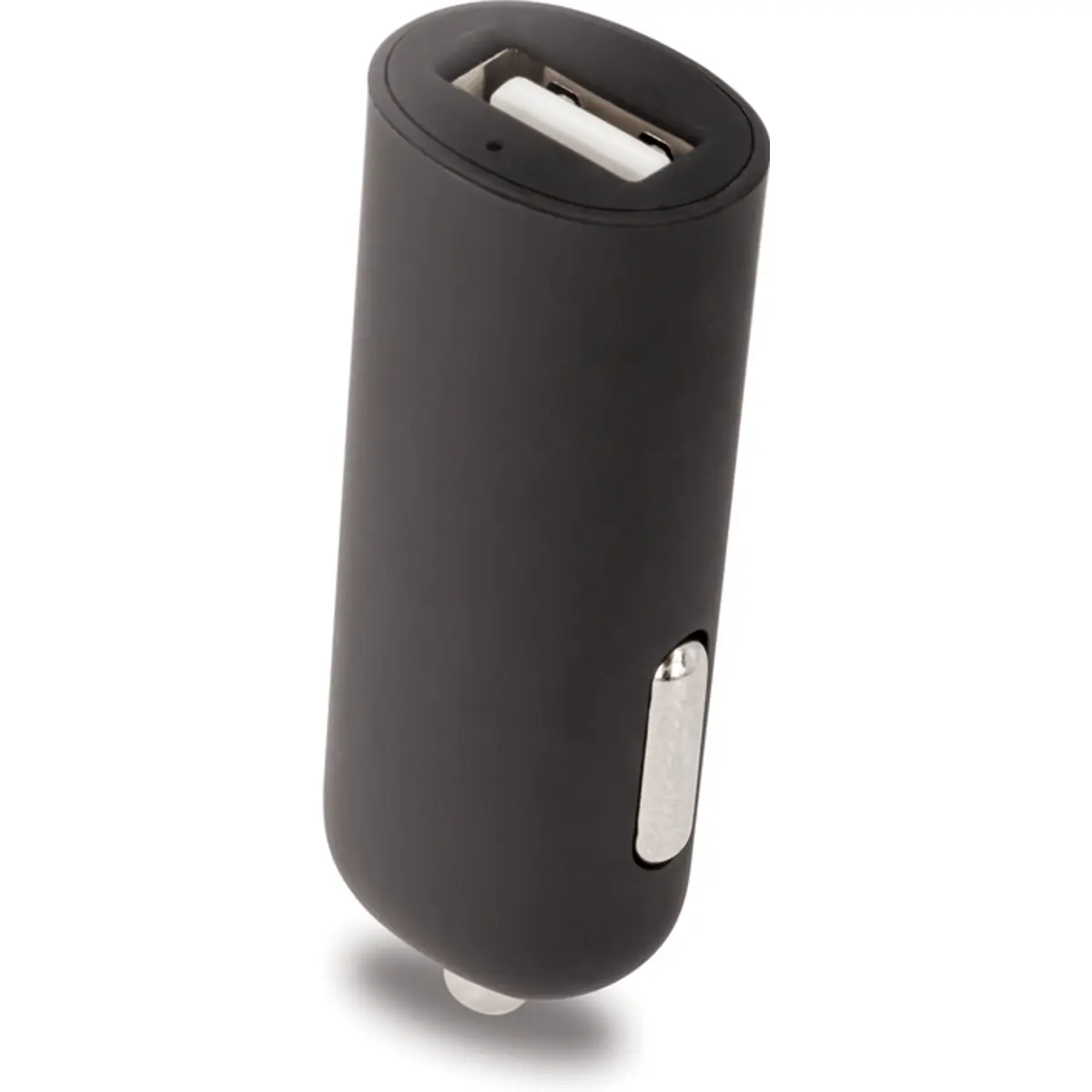 Conjunto carregador/alimentador para isqueiro com cabo Lightning, compatível com tomadas de 100-240 V AC e alimentação de isqueiro de 12 V DC. Possui uma única porta USB de saída a 5 V/2 A e inclui um cabo Lightning com comprimento de 1,20 mm. O acabamento é preto e o design compacto facilita a instalação tanto em casa como no veículo, fornecendo um método prático para manter dispositivos carregados durante as viagens.