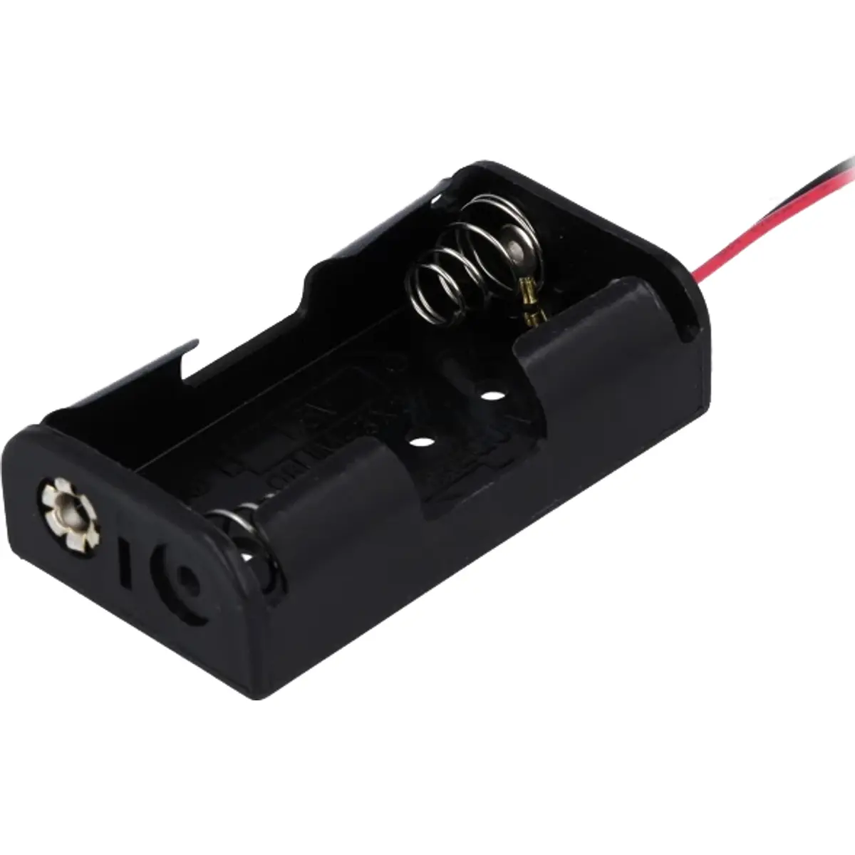 Suporte de pilhas com duas pilhas AA em série, com saída de fios de 150 mm. Ideal para projetos eletrónicos que requerem alimentação em série, com ligação R6. Permite ligar componentes de forma simples e portátil, facilitando protótipos e experiências que necessitam de uma fonte de alimentação em configuração em série.