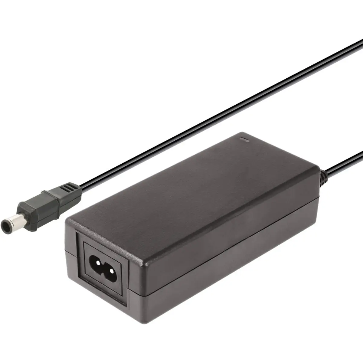 Fonte de alimentação DC com entrada ampla 110-240Vac e frequência 50-60Hz, oferecendo saída estável de 14Vdc a 2,5A com potência de 35W. Ideal para dispositivos que exigem alimentação fiável e segura, com conector DC de 6,5x4,4mm e pino central, assegurando compatibilidade e facilidade de substituição. Dimensões compactas 105,0x45,0x28,5mm facilitando a instalação, adequada para uso doméstico ou profissional. Compatível com equipamentos que requerem alimentação estável.
