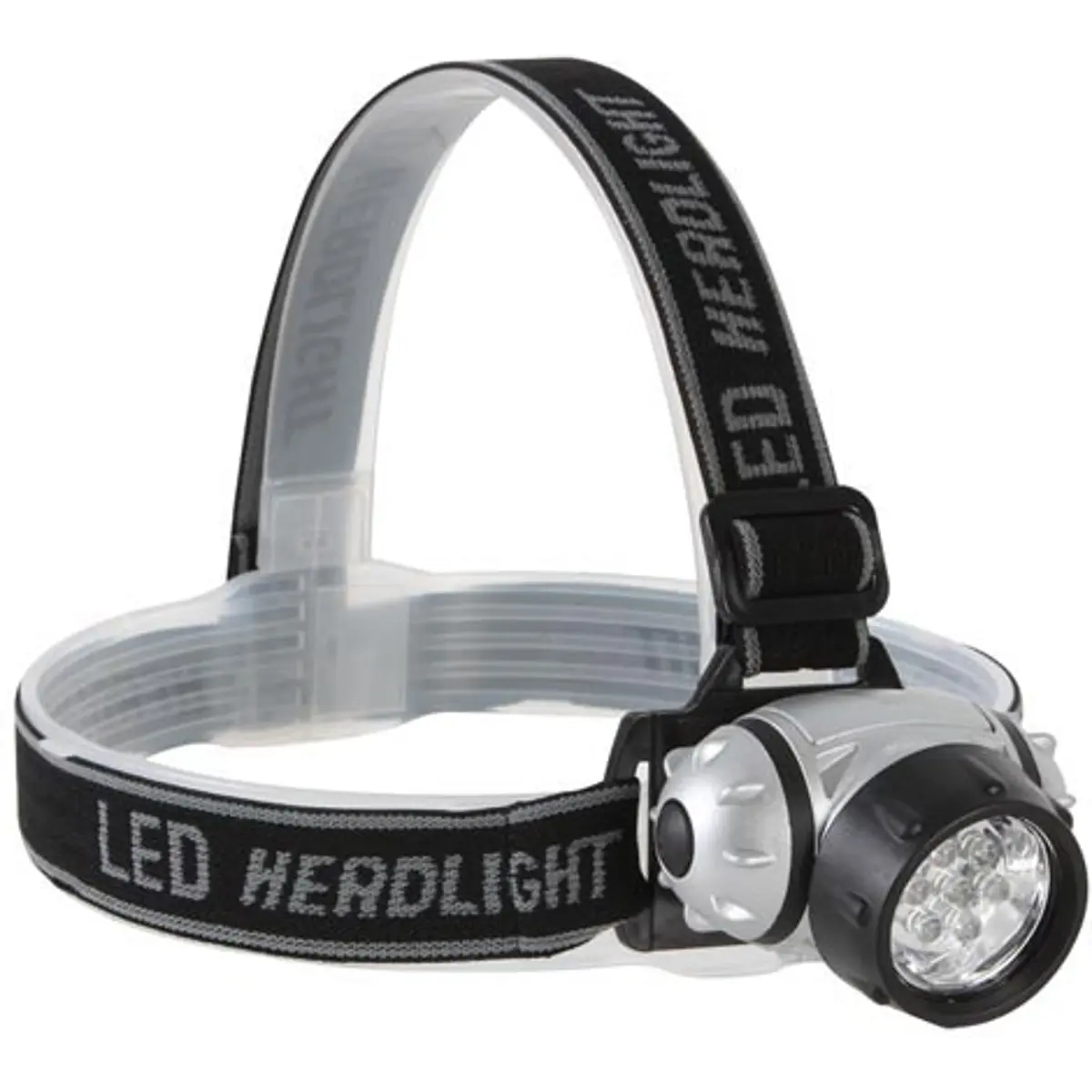 Lanterna de cabeça regulável com 7 LEDs de alto brilho para atividades ao ar livre. Oferece quatro modos de iluminação: 1 LED, 3 LEDs, 7 LEDs acesos e 7 LEDs intermitentes, com autonomia até 5 horas, dependendo das pilhas. Alimentação por 3 pilhas AAA (não incluídas). Corpo em ABS com banda elástica de nylon, inclinação regulável e faixa de cabeça ajustável com clip de fixação. À prova de água, leve (85 g sem pilhas) e de dimensões 70 x 65 x 45 mm.