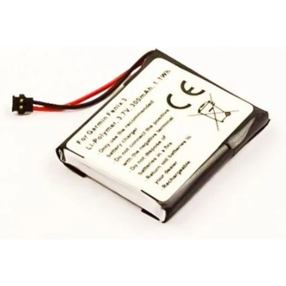 Bateria de substituição para GPS em Li-Po com 3,7V e 300mAh (1,1Wh). Referência original 361-00034-02. Dimensões compactas, facilitando a substituição em dispositivos de navegação com baterias de polímero de lítio. Compatível com Garmin Fenix 3 e Fenix 3 HR, oferece instalação simples, boa autonomia e fiabilidade para uso prolongado.