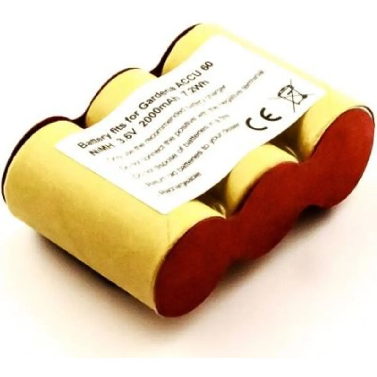 Bateria de substituição NiMH de 3,6V e 2000mAh para dispositivos Gardena ACCU 60, com 7,2Wh de energia. Possui dimensões compactas de 67,1 x 44,1 x 22,4 mm e terminais Faston de 4,8 mm e 2,8 mm, facilitando a instalação. Compatível com Gardena ACCU 60, oferece desempenho estável e boa capacidade de armazenamento para uso doméstico em ferramentas e equipamentos de jardim.
