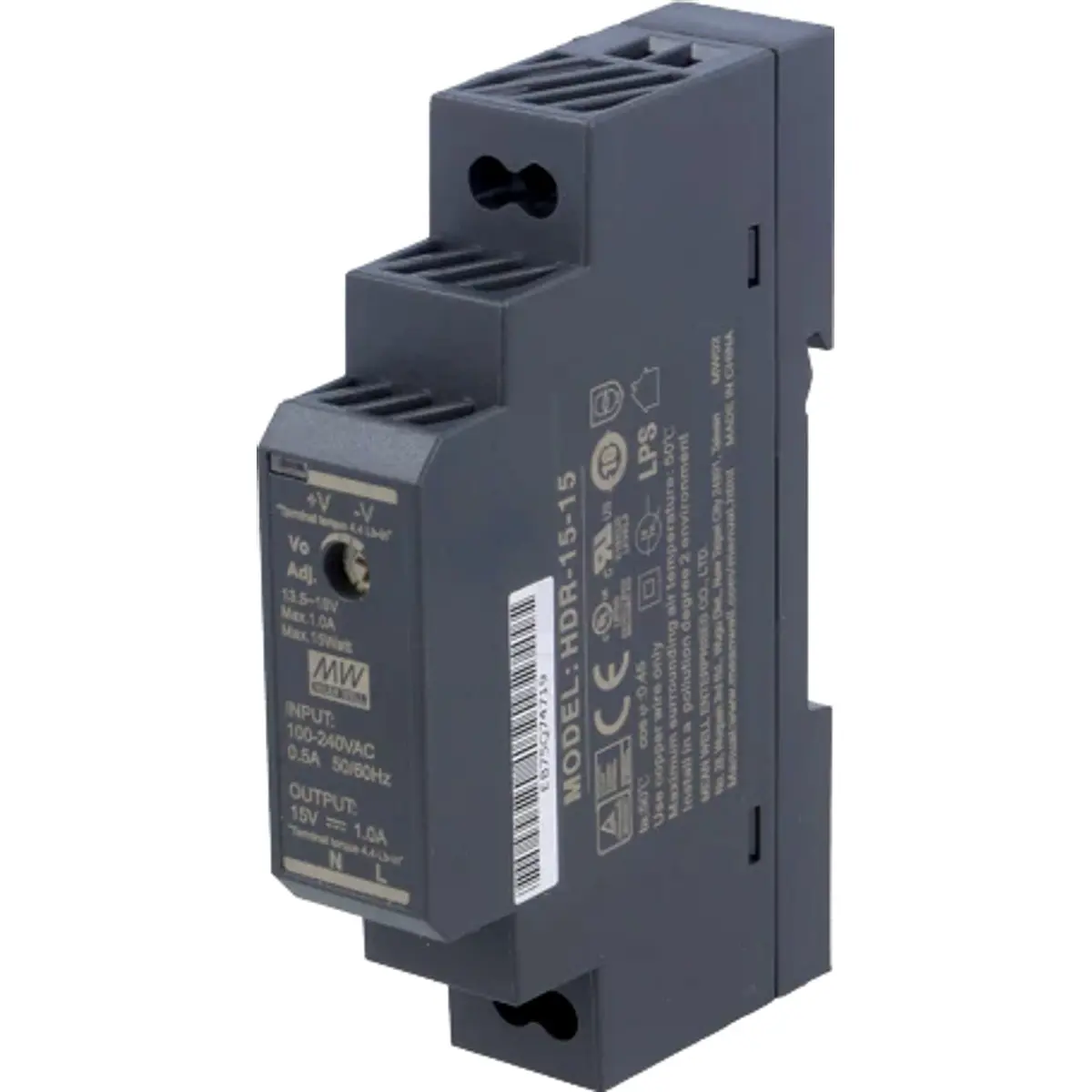 Mean Well HDR-15-15 - Fonte de alimentação para calha DIN 15VDC (13.5...18VDC) 1.0A 15W