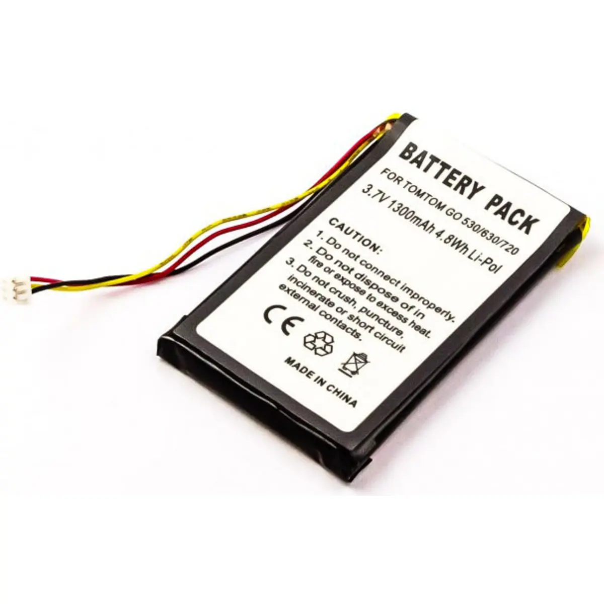 Esta bateria para GPS é compatível com TomTom Go920 e Go920T, oferecendo 3.7V, 1300mAh e 4.8Wh em Li-Polymer para maior durabilidade. Com dimensões compactas de 59.7x38.4x5.6mm e peso de 24g, facilita substituição rápida sem alterar o formato original. Ideal para manter a autonomia do GPS, garantindo desempenho estável e segurança, com materiais de qualidade e resistência a desgaste.