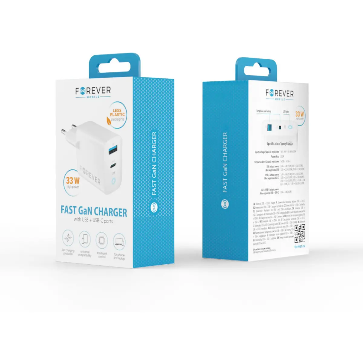 Forever TC-06-33AC - Carregador GaN QC3.0 + PD3.0 33W (USB-A + USB-C)