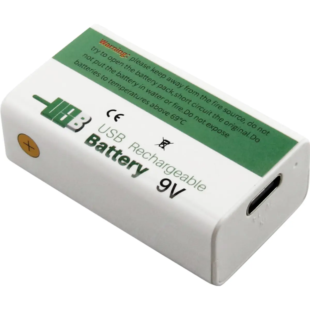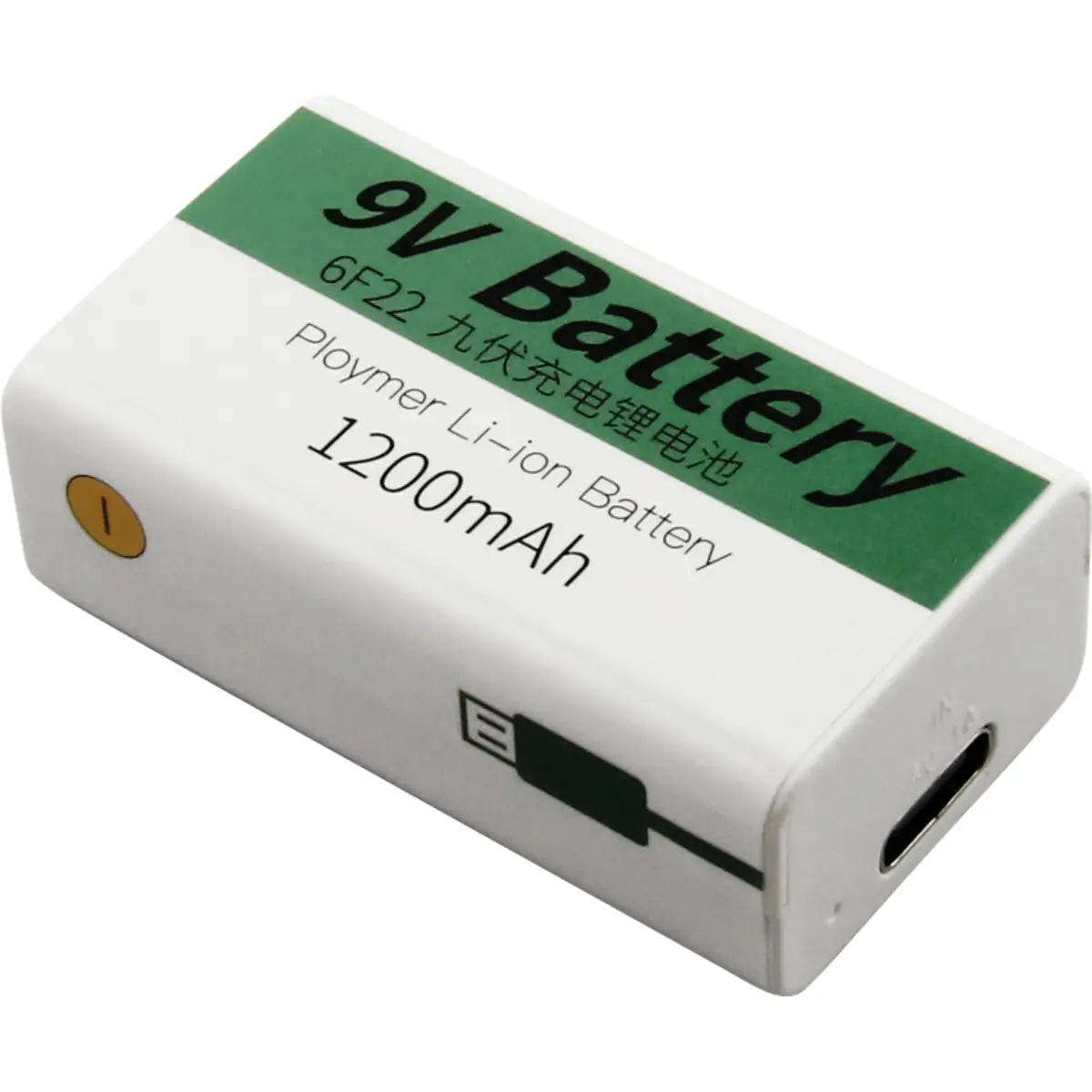 Bateria Li-ion 6F22 (9V) 7.4V recarregável por USB-C - 1200mAh