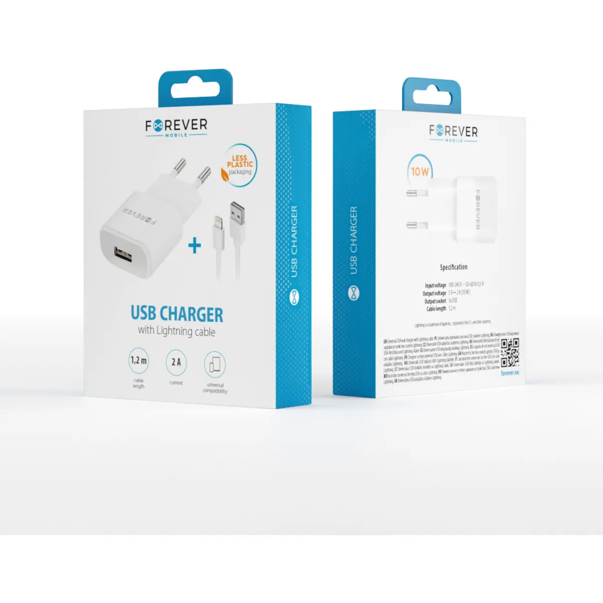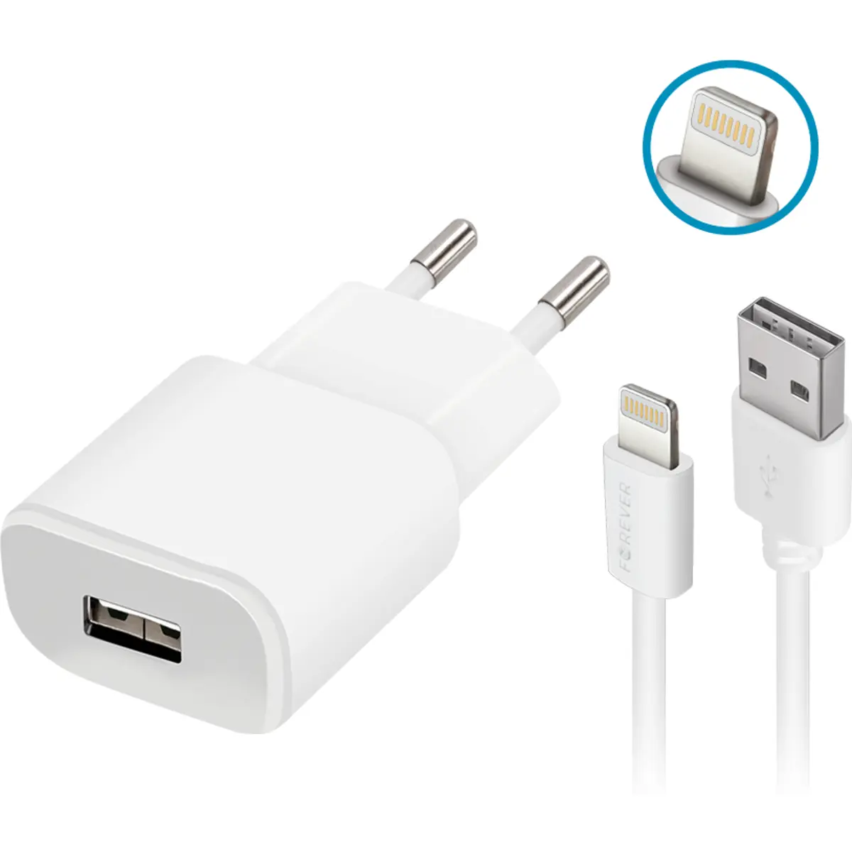 Forever TC-01 - Carregador USB-A 10W 2A + cabo Lightning - Branco