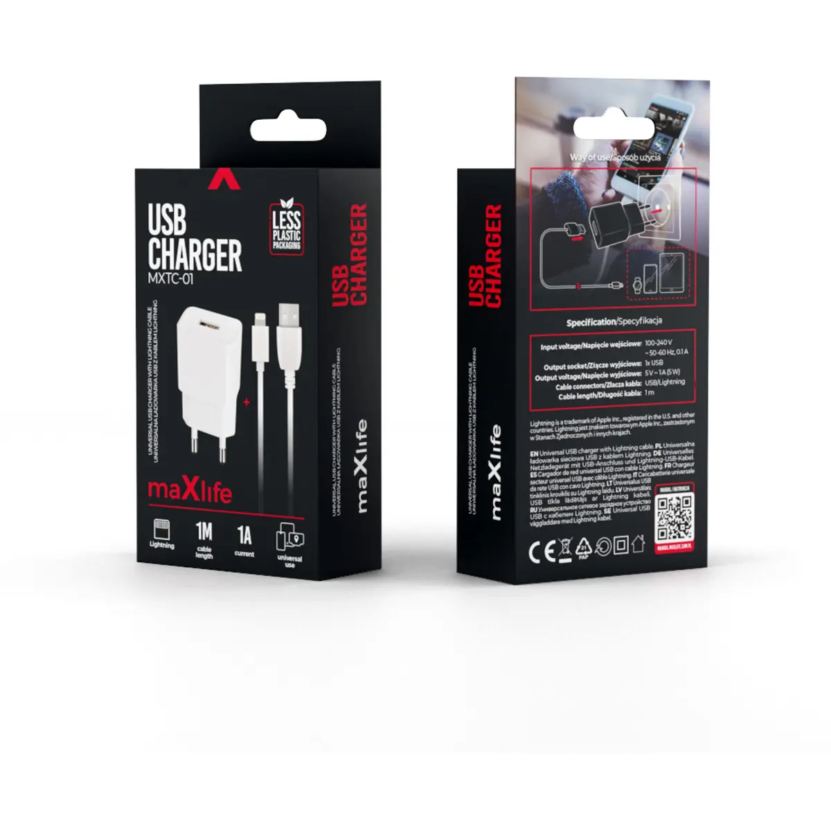 Maxlife MXTC-01 - Carregador USB-A 5W 1A + cabo Lightning - Branco