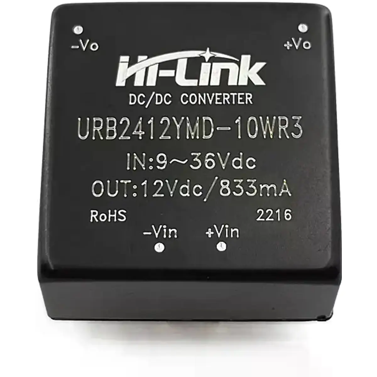 Hi-Link URB2412YMD-10WR3 - Conversor DC-DC galvanicamente isolado 24VDC (9~36V) -> 12VDC 833mA 10W (saída regulada)