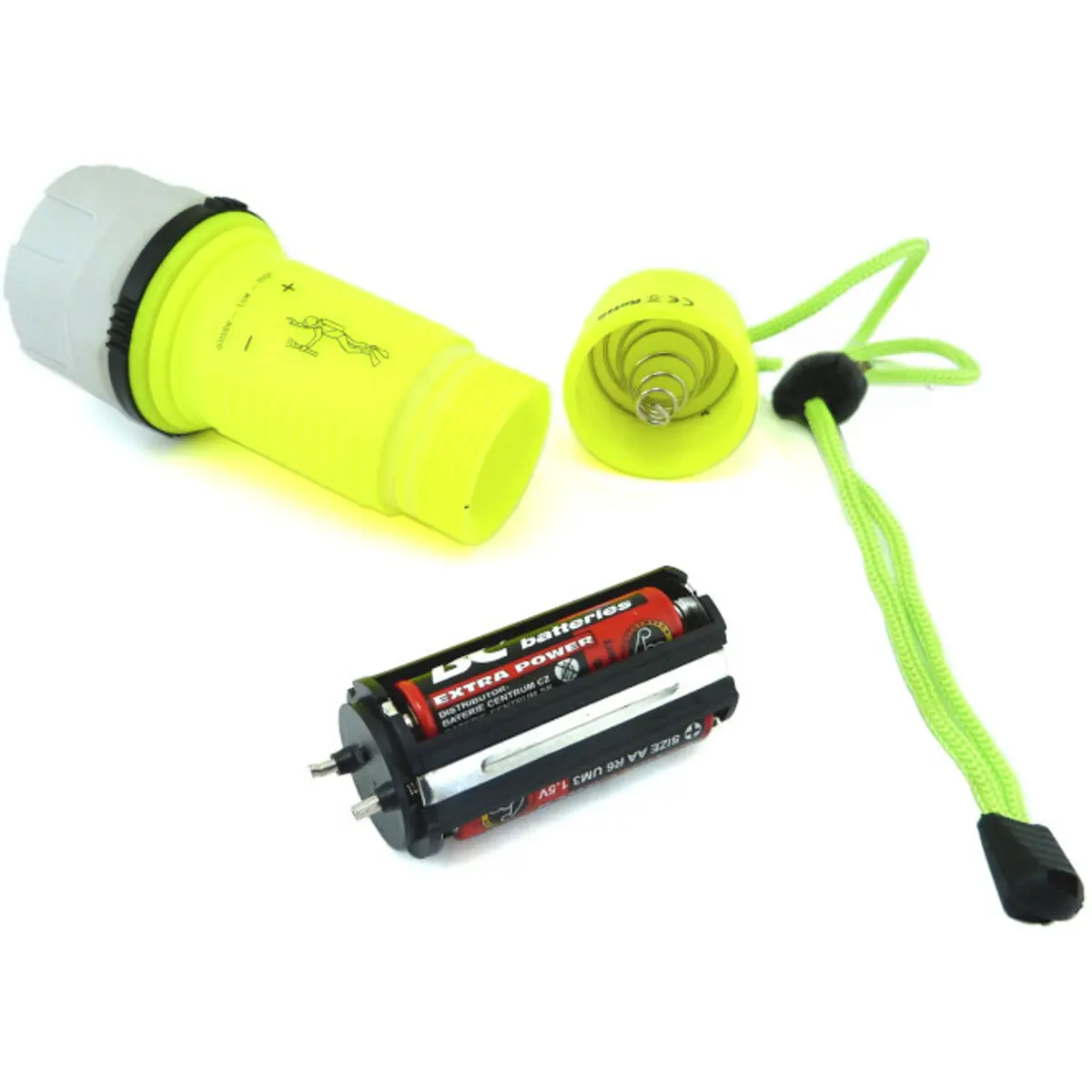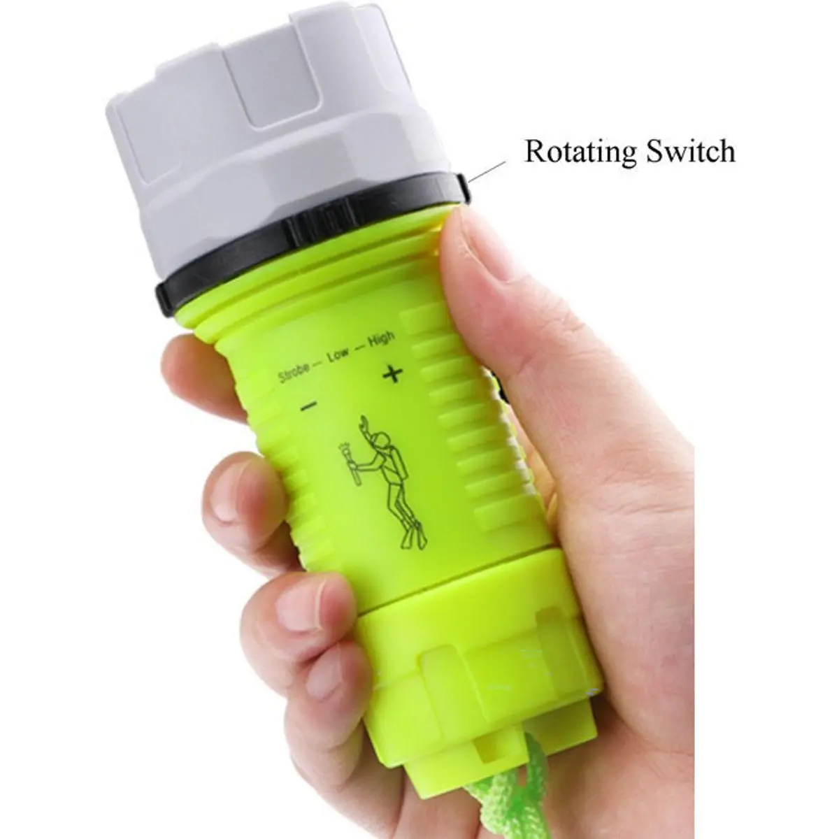 Lanterna impermeável e flutuante ideal para mergulho. Escolha entre três modos de iluminação: alto brilho, médio e intermitente. Alimentada por três pilhas AA (não incluídas), possui cordão e ajustador para fixação segura nas mãos. Confortável e prática para toda a família e atividades ao ar livre, como montanhismo, camping, ciclismo, caça, etc.